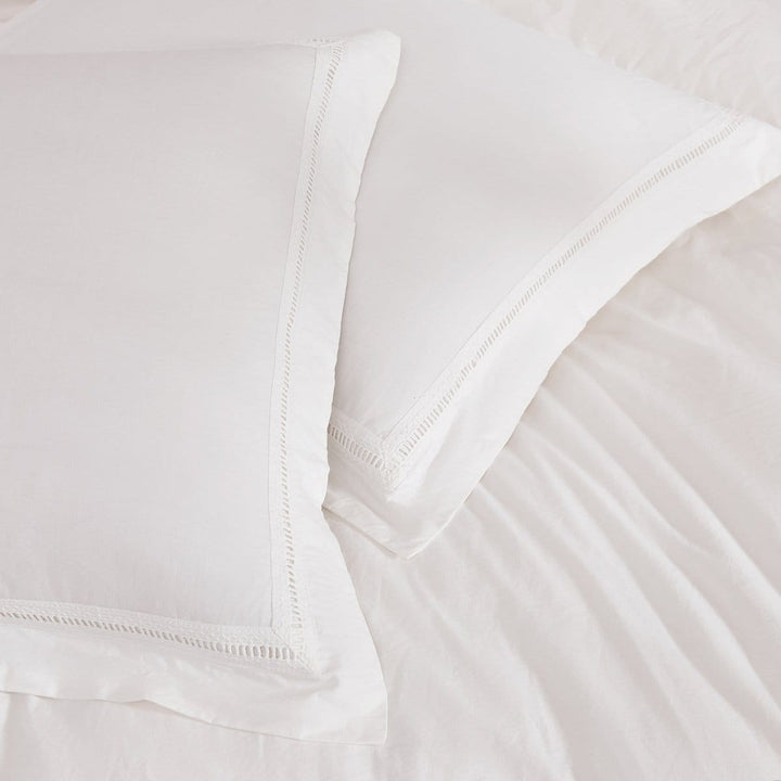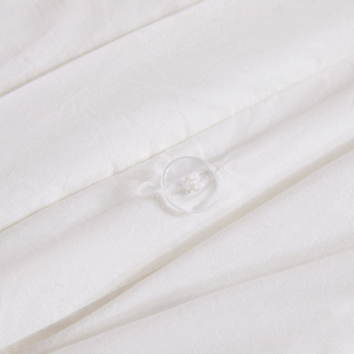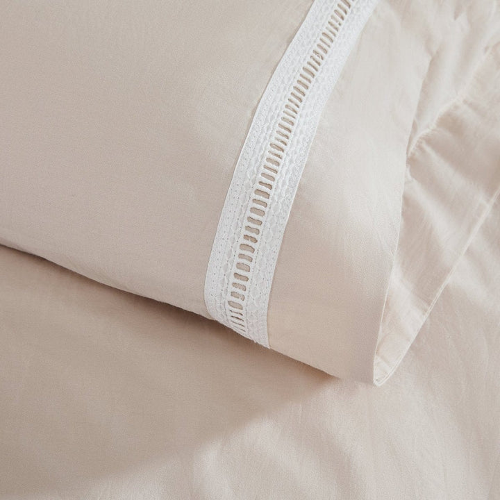 Decorate your bed with this delicately stitched cotton duvet cover set. The eyelet trim adds a soft, romantic look. The simple, neutral design makes this embroidered duvet a versatile layering piece for a country cottage styled space. This 3 piece bedding set includes 1 duvet cover and 2 shams and is crafted from 100% cotton. Add your ideal insert weight for year-round comfort and easily secure it with button closures and corner ties. Machine washable for easy care.