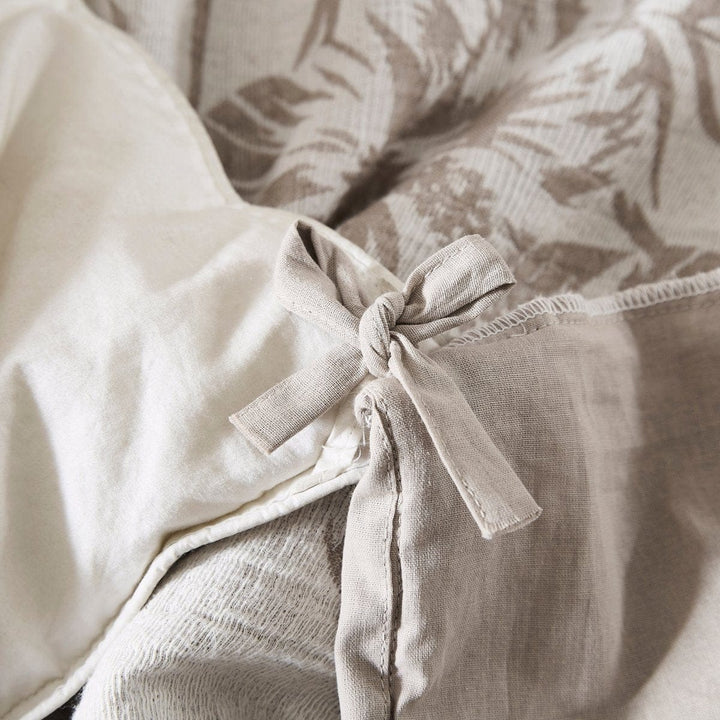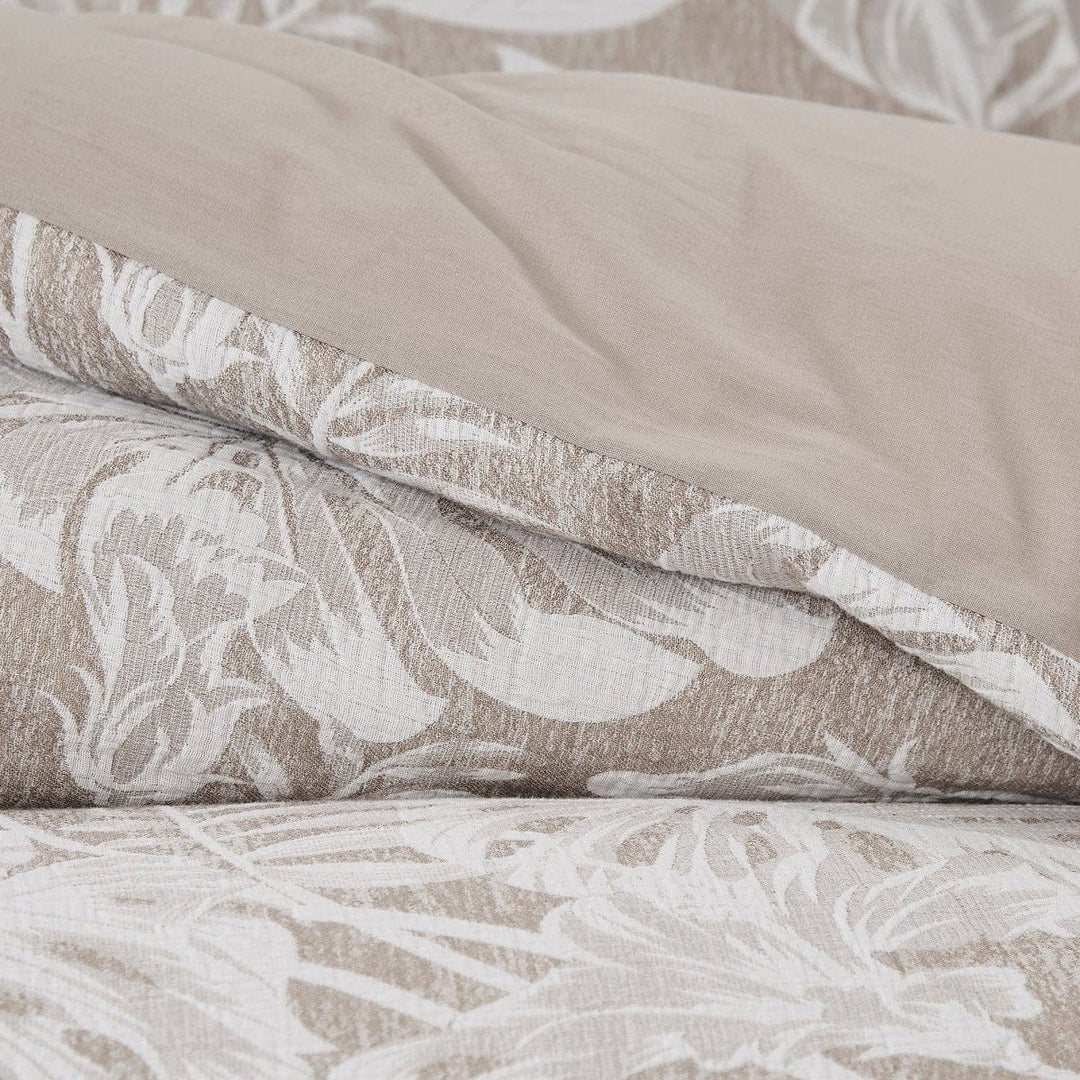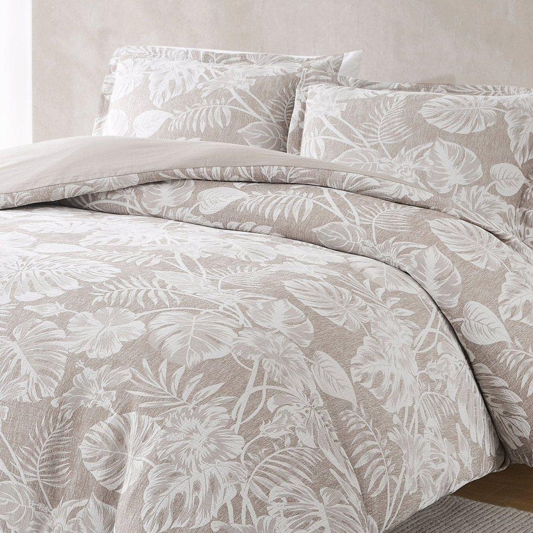 Add resort-style comfort with this lightweight cotton blend duvet cover set. The palm leaf print is perfect for a boho or coastal styled home. This 3 piece bedding set includes 1 duvet cover and 2 shams. Add your ideal insert weight for year-round comfort and easily secure it with button closures and corner ties. STANDARD 100 by OEKO-TEX® certified, all components have been tested and certified free from harmful substances. Machine washable for easy care. Do not bleach.
