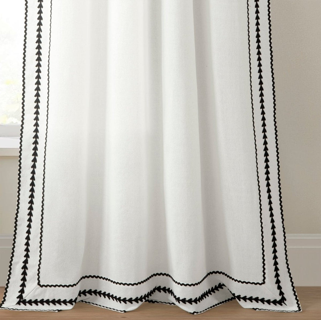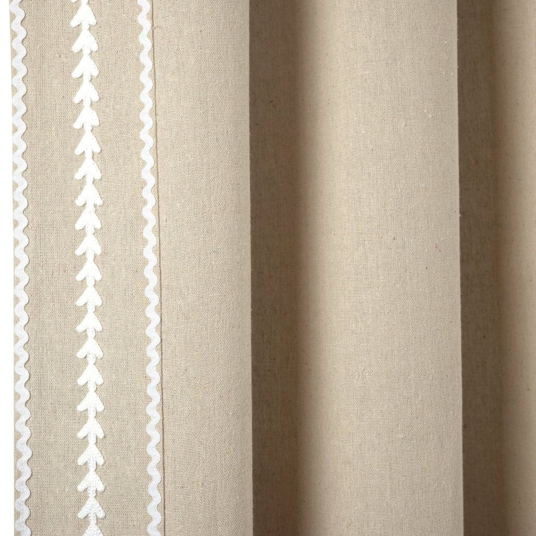 أعط نوافذك ستائر النوافذ ذات الحواف المطرزة من Olivia Ric Rac تتميز بأسلوب متطور وذوق عصري. المادة الشبيهة بالكتان خفيفة وجيدة التهوية لتحافظ على مساحتك مشرقة وجذابة، مع توفير الخصوصية الكافية.