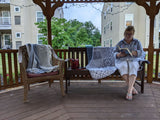 The front of this Monique Throw features a navy and white patchwork design of geometric patterns printed on 100% cotton. The reverse side features a simple stripe pattern to complement the front. Each side brings its own unique style to the space.