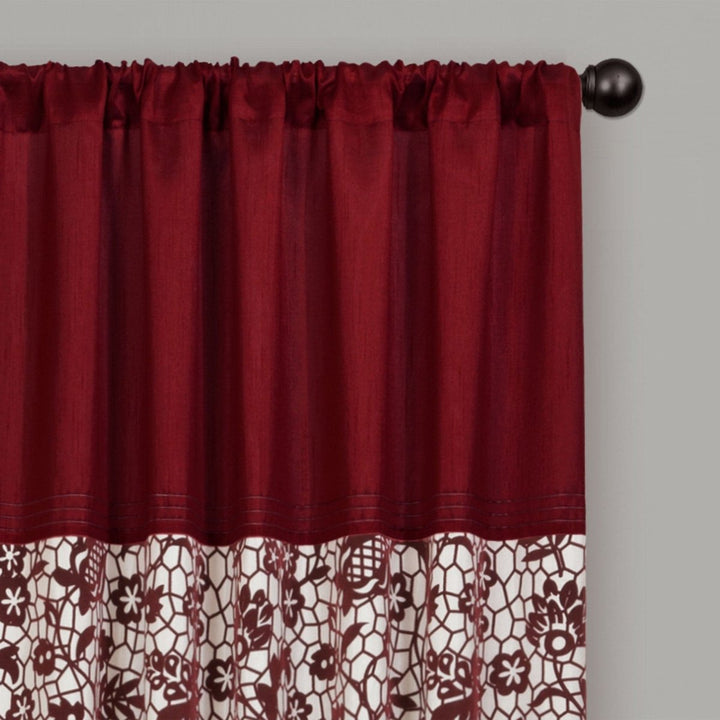 The Estate Garden Window Curtain is sold by the individual panel and one measures 84 inches in length and 54 inches in width. It is only available in the wine red color, but we also have a printed version available in more color options and sold by the pair.