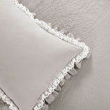 The Ella Ruffle Lace 3 Piece Bedspread Set, which is available in soft neutral colors to create a calming atmosphere, is sure to impress you and your guests with the incredible amount of special details that are incorporated in the design.