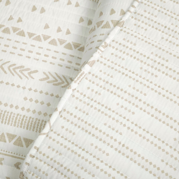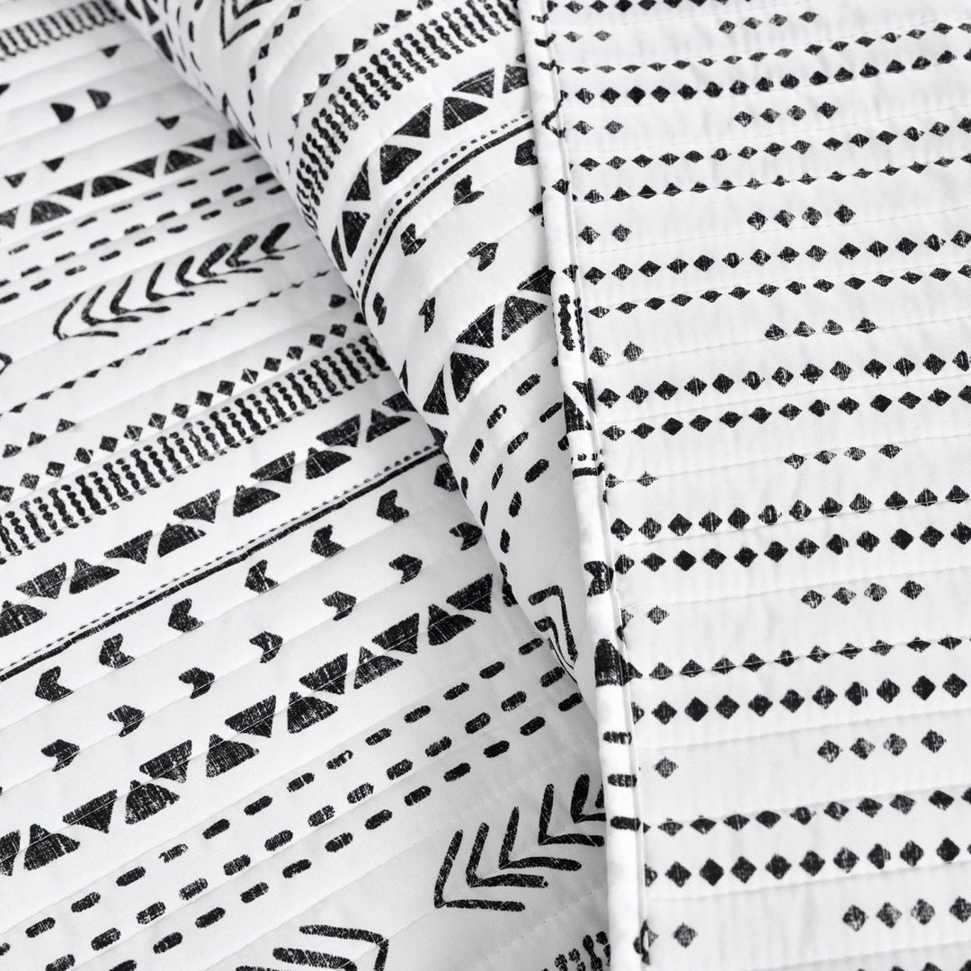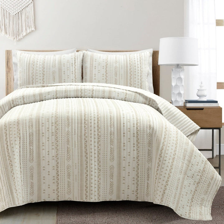 Add Scandinavian style to your home with this reversible Hygge Stripe 3 Piece Quilt Set featuring vertical stripes of various geometric patterns. This three-piece quilt set provides the perfect neutral look to create a cozy feeling in your master bedroom or guest bedroom.