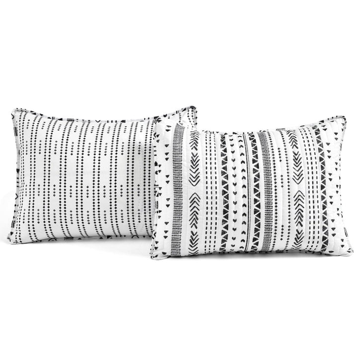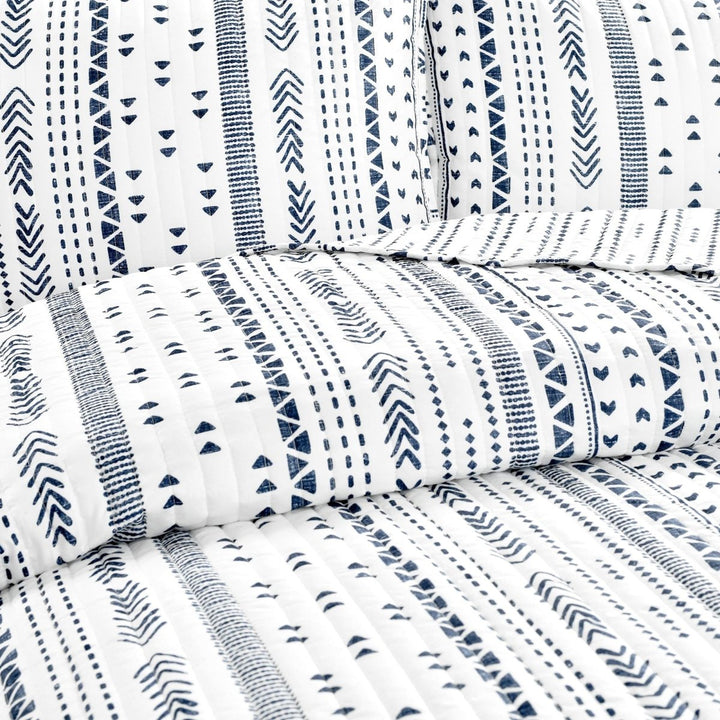 The reverse side of the Hygge Stripe 3 Piece Quilt Set features a print of diamonds in a striped pattern against a white background. This gives you the option to change the look of the room in an instant, simply by flipping the cover over. Both sides of this set are also great for layering with other quilts or comforters.
