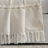 The selection of neutral colors and its simple yet stylish design make this throw easy to fit into many decor themes, from boho to farmhouse and hygge, to name a few. The tufts that run horizontally across the Herringbone Stripe Yarn Dyed Cotton Woven Tassel Throw give if added texture for your space.