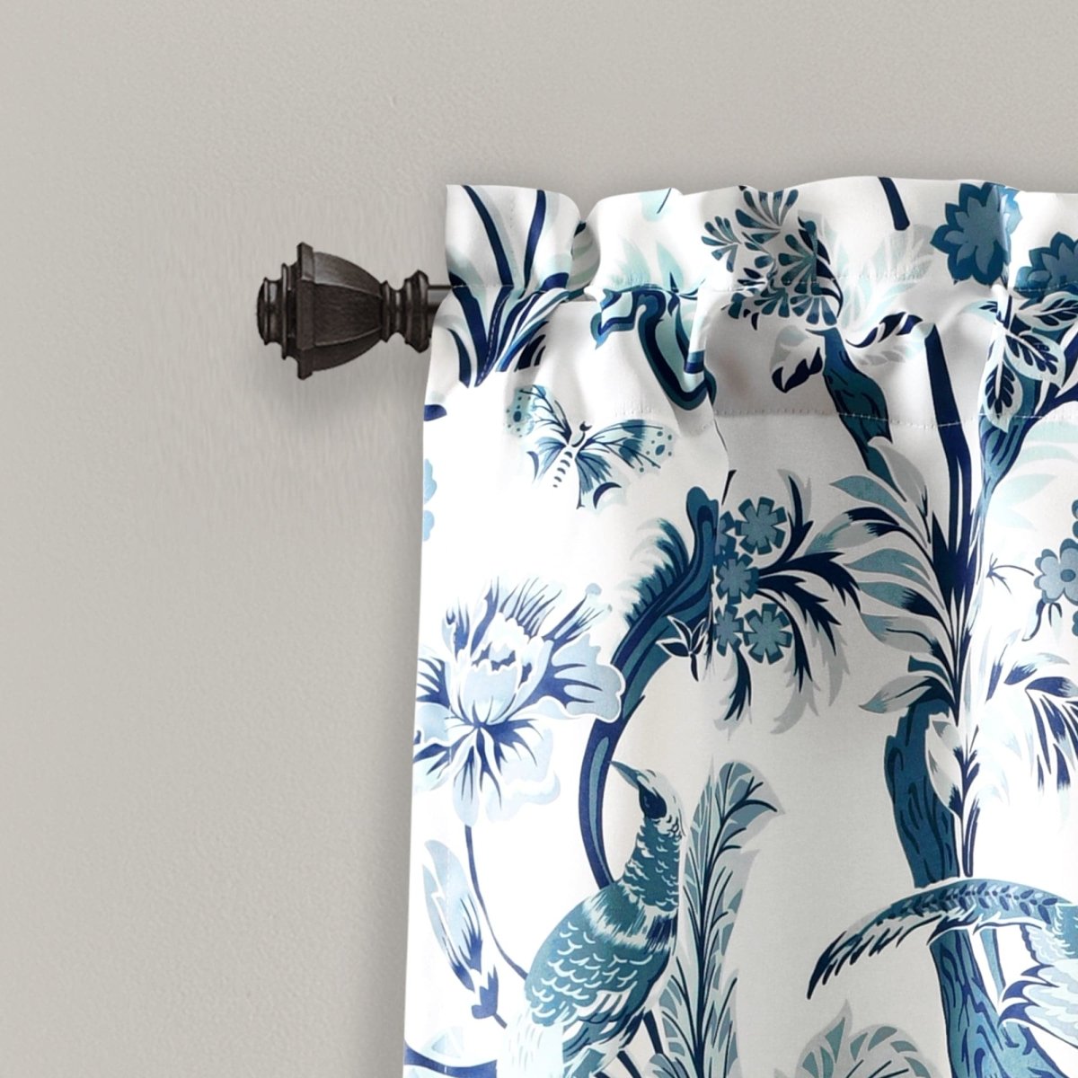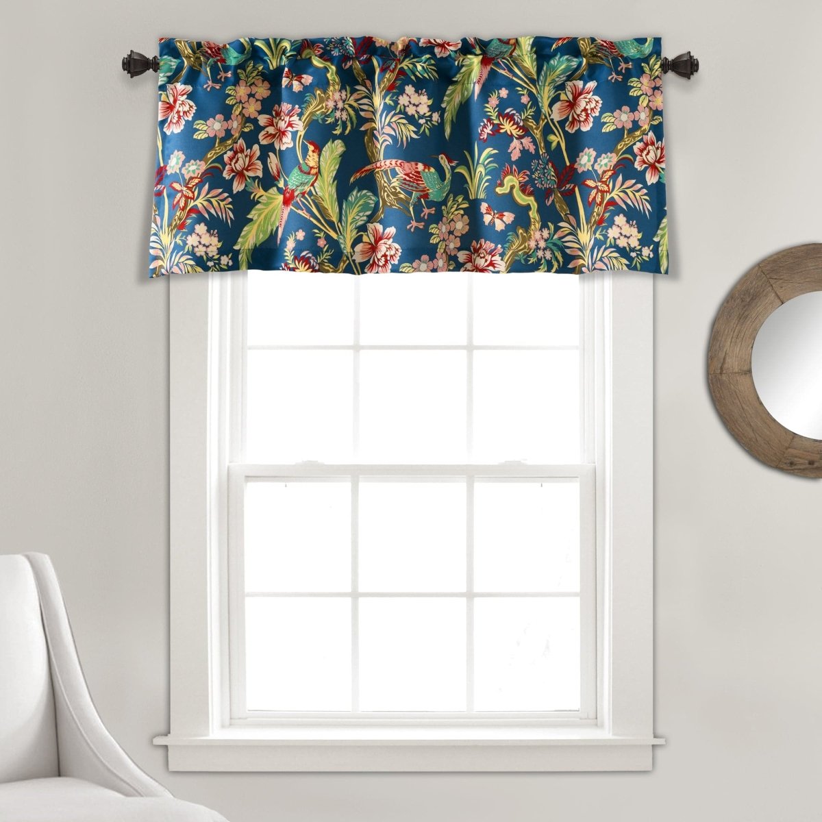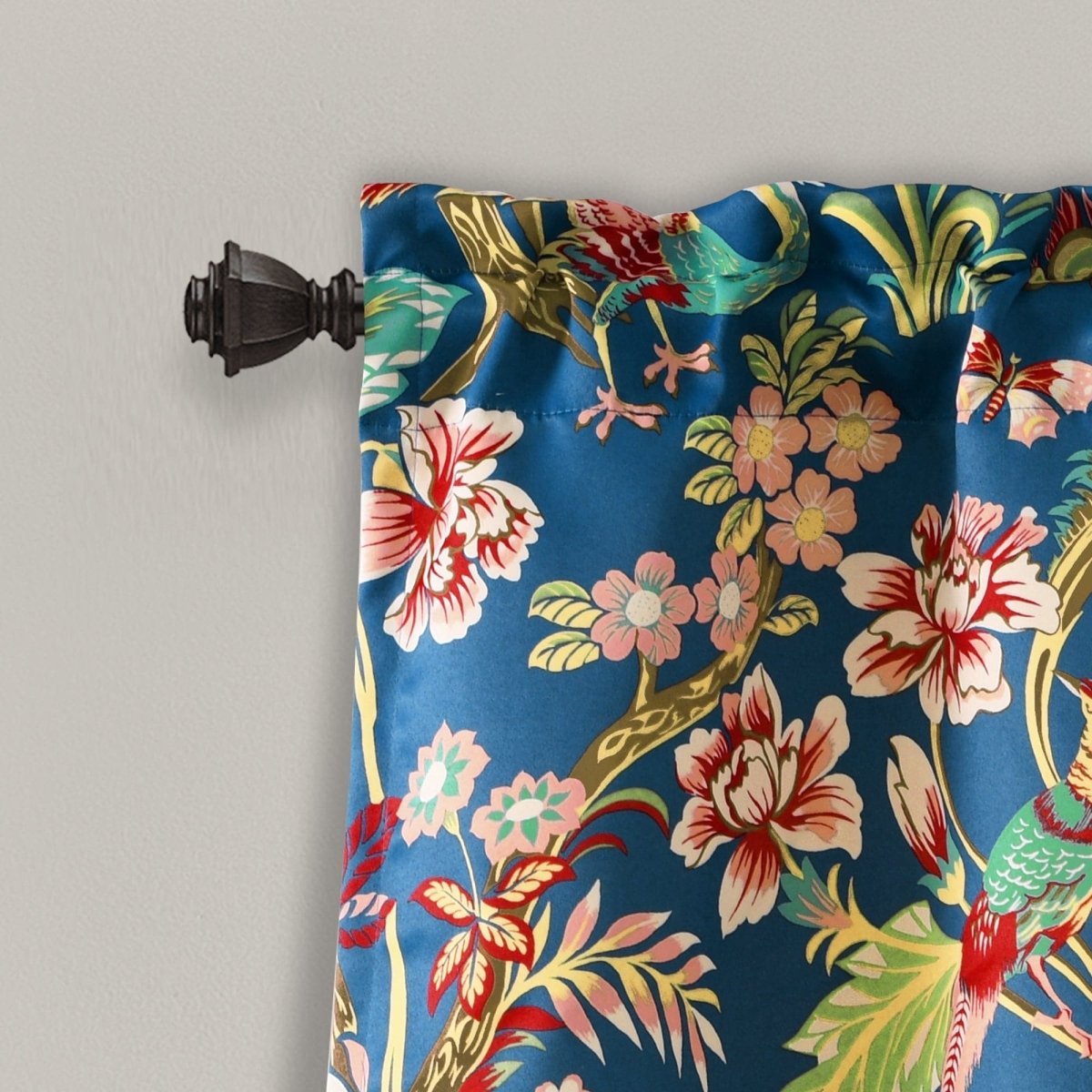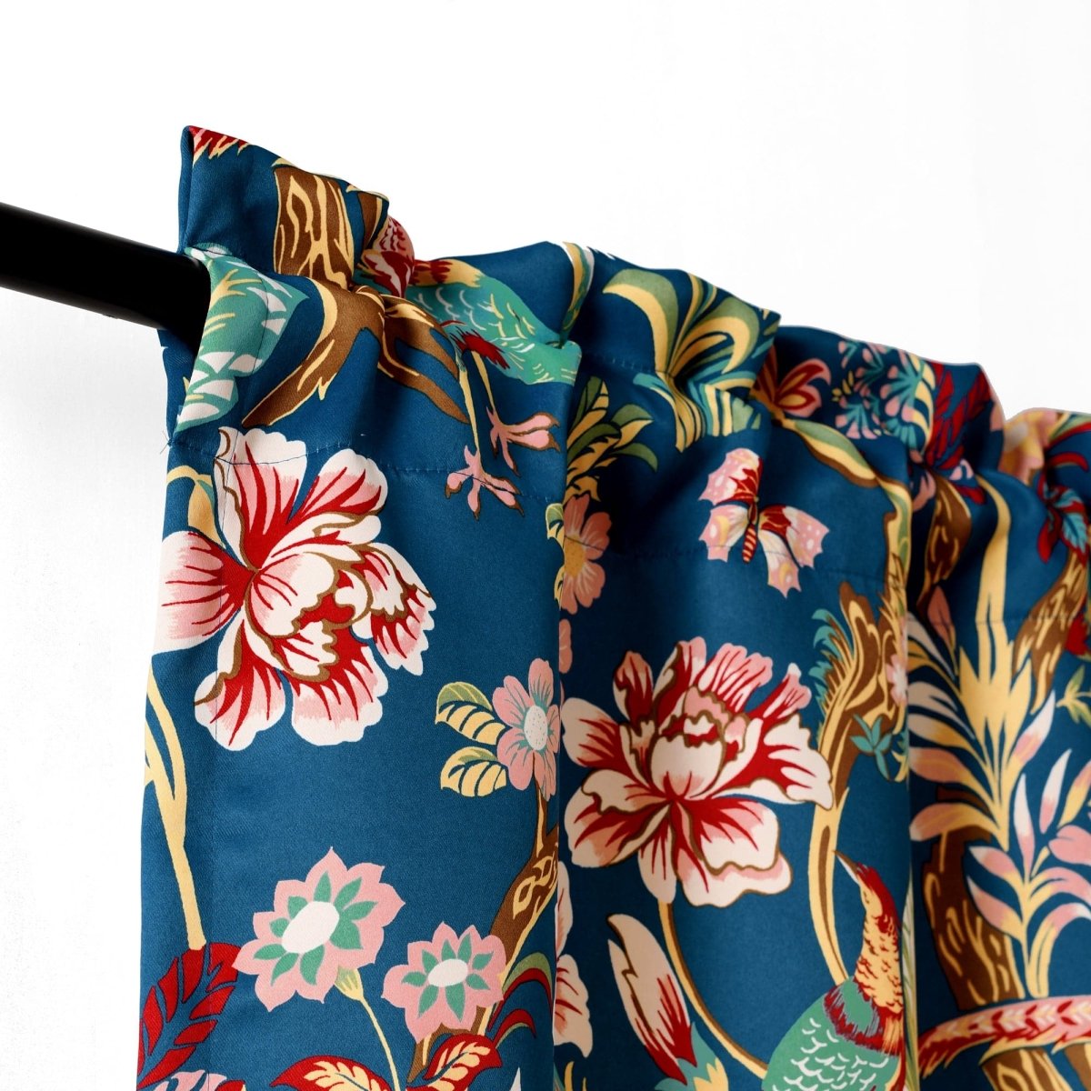 This stylish Dolores Valance features a lively nature design with peacocks, flowers and leaves printed on light blocking fabric which helps cut the glare and regulate the temperature in your room.