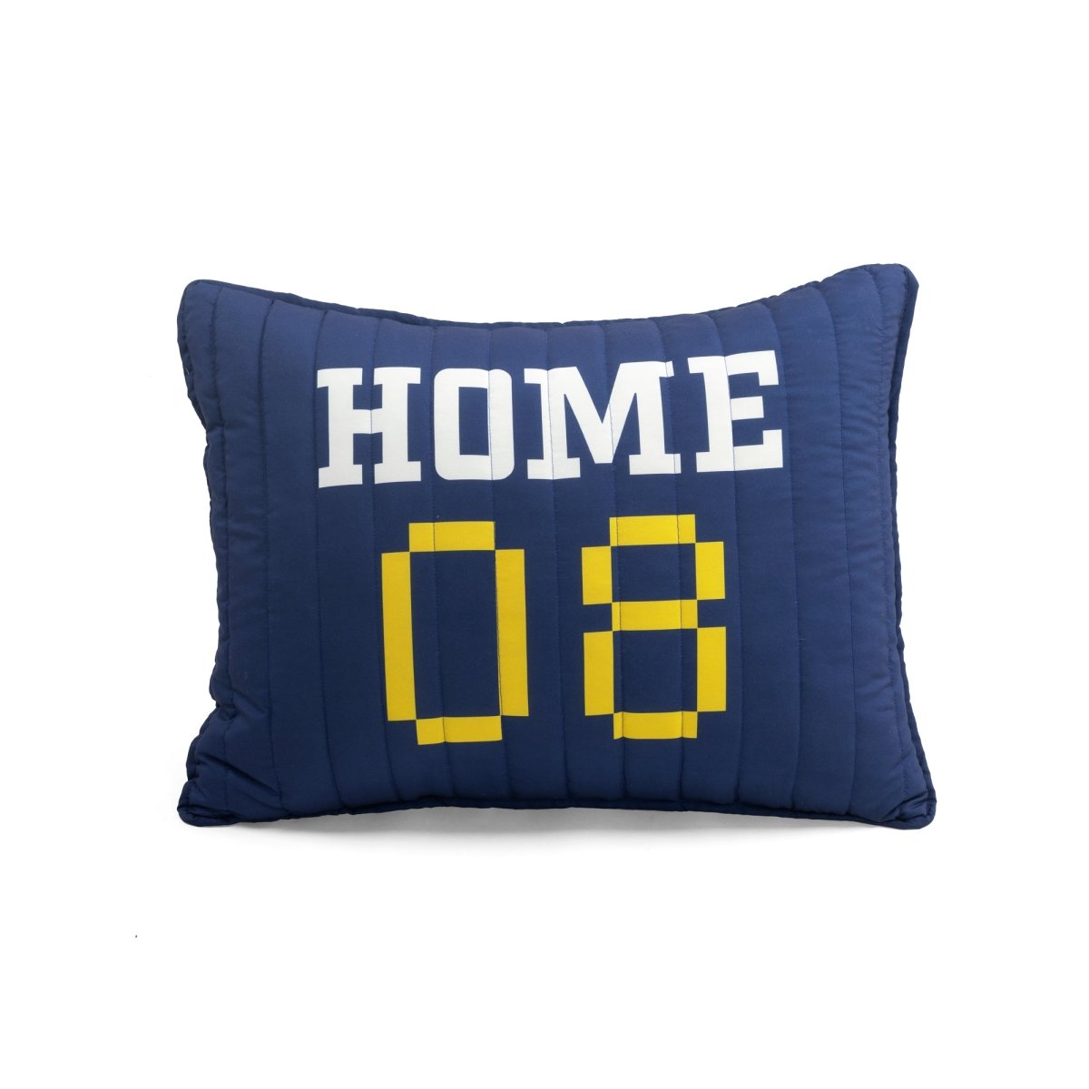 There's nothing your little soccer star will love more than coming home to a bedroom decorated with their favorite sport. Oversized for their comfort and reversible for their style, they'll love the year round comfort this quilt set has to offer. Your little one's room is about to get a major sporty makeover! This cool and trendy soccer field reverses to an exciting graphic design for their athletic style. The five piece set includes one oversized quilt, two shams, and two decorative throw pillows. With this lightweight polyfill quilt, your child can dream of being a soccer superstar all year round. Each sham has a standard envelope opening for your convenience. Please refer to label for full care instructions.