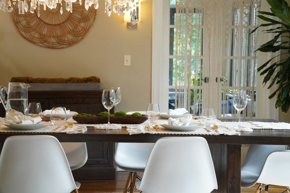 Your bohemian backyard sanctuary can now be completed. These water repellent macrame placemats will style your picnic or patio table with hand knotted artwork for a natural and stylish look. This Boho Macrame Indoor/Outdoor Placemat 2-Pack Set can also be styled indoors.