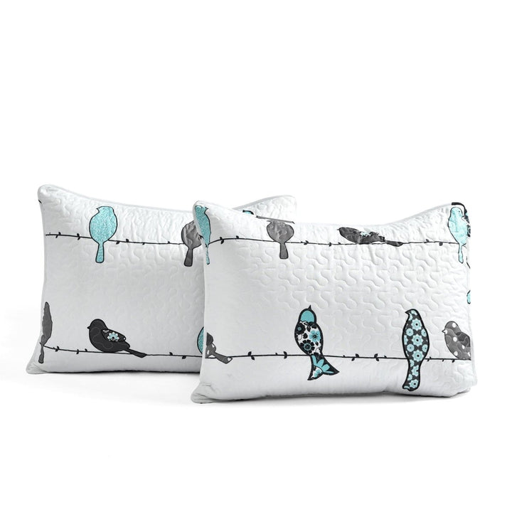 The reverse side of the Rowley Birds Quilt 7 Piece Set has a textured look. It's not quite solid color. The reversible nature of this quilt gives you the option to switch up the look of your room as often as you like.