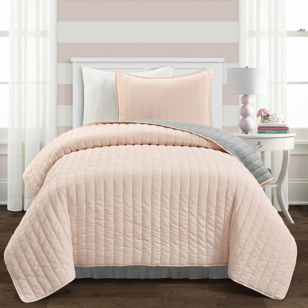 Reversible and refreshingly soft, this all-season quilt/coverlet set features a cozy crinkle microfiber texture with a vertically striped quilted design. The solid color on each side makes it easy to coordinate with a range of bedroom styles—from modern to farmhouse—and perfect for layering or switching up your look. A timeless choice for all ages and spaces.