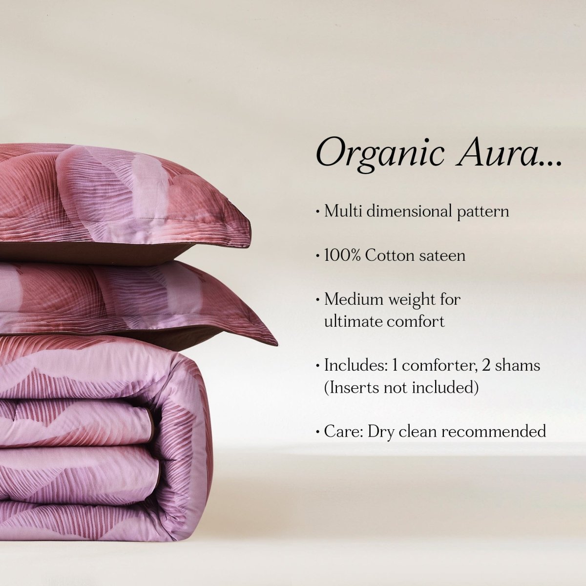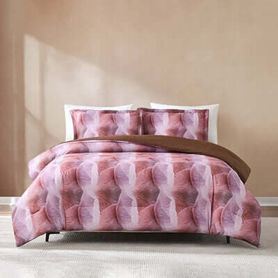 Merging nature’s artistry with modern elegance, the Gilded Spore Cotton Comforter Set is a true statement piece for your bedroom. Designed in a rich rose palette with deeper burgundy undertones, this bedding creates a gorgeous dimensional look inspired by the intricate patterns found beneath a mushroom cap. The rhythmic design adds depth and movement, turning your bed into the focal point of the room.