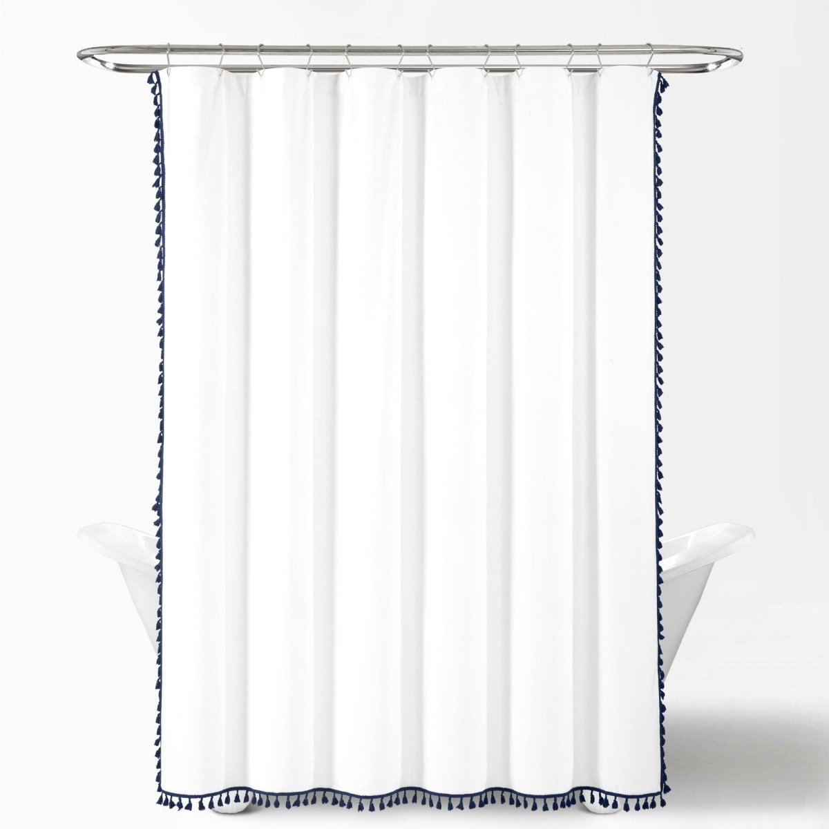 Combine simplicity with your favorite boho accent and you get this stylish Boho Melora Tassel Yarn Dyed Recycled Cotton Blend Shower Curtain. This solid white curtain is anything but boring, featuring a tassel trim on 3 sides, adding the right pop of color to your primary or guest bathroom. This product contains 100% GRS certified recycled material.