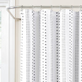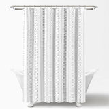 Measuring 72 inches long and 72 inches wide, the Hygge Stripe Shower Curtain will fit nearly any bathtub. It hangs easily with any standard shower curtain hooks or rings.