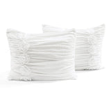 Due to popular demand, our Darla Comforter Set is back! This is a perfect comforter set if you are looking for something that has great workmanship and also is simply beautiful. Along with the ruching, there is hand crafted flower details that create a soft and lovely vision for your bedroom.