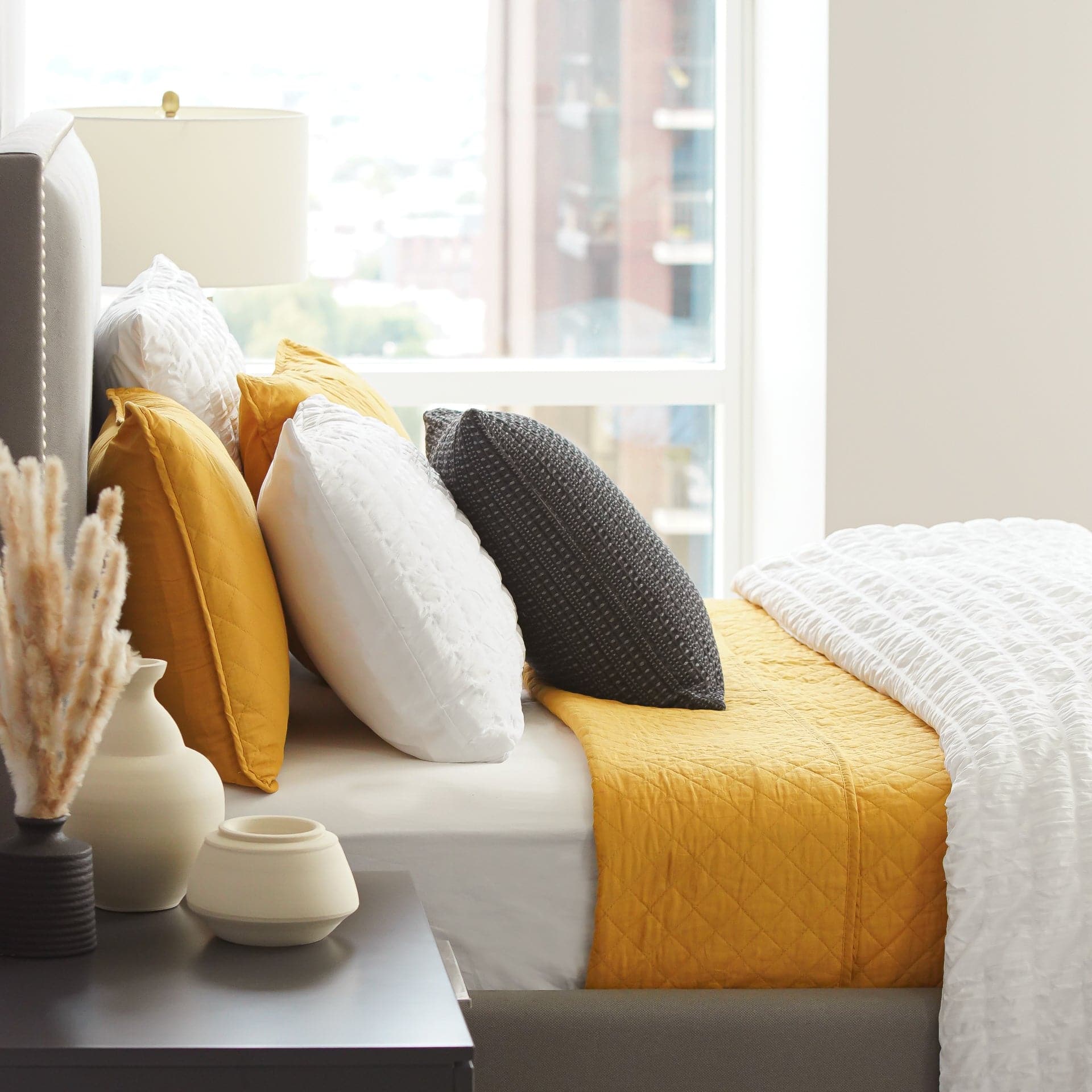 This soft and lovely Ava Diamond Oversized Cotton Quilt Set is perfect for the minimalist. This generously sized quilt set will brighten up any room and any mood. It easily fits well with any bedroom decor, and the diamond pattern adds interest and texture.