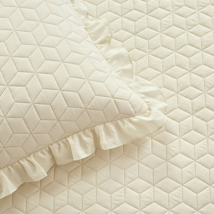 This French Country Geo Ruffle Skirt 3 Piece Bedspread Set set is perfect for a French Country, minimalist, farmhouse, traditional, cottage, or even modern theme. The embossed geometric pattern sets this bedding apart from a standard bedspread. Use this set on its own or for layering with a throw blanket or quilt.