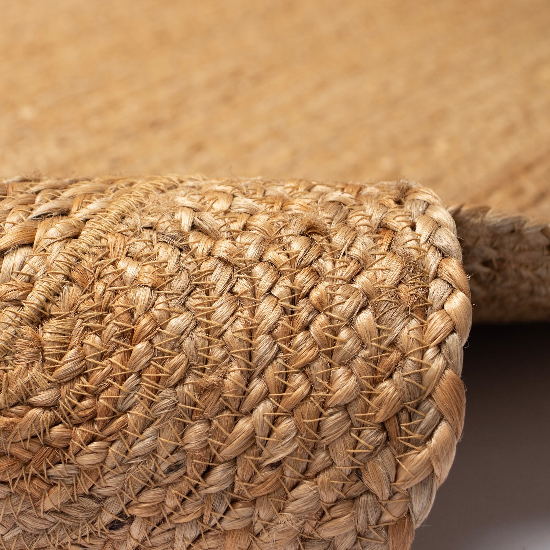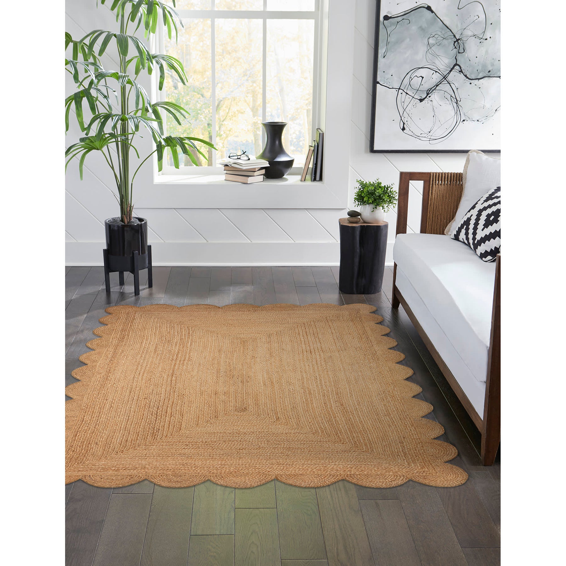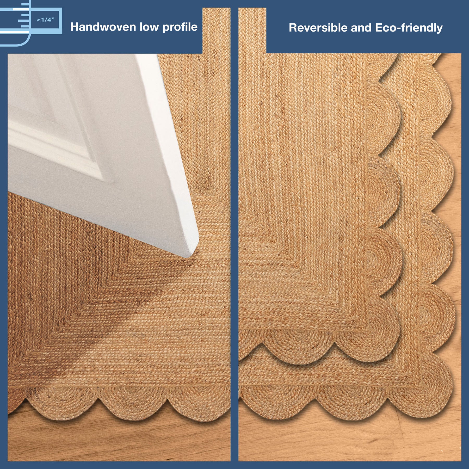 The Scalloped Edge handwoven braided flatweave area rug features a bold texture in solid neutral tones and a subtle geometric design with a scalloped border trim for a traditional touch. The reversible, low-profile rug offers an organic appeal and textured weave in a rich wheat hue that complements styles from traditional to coastal. The low maintenance and easy care of this rug makes this the perfect combination of style and durability.