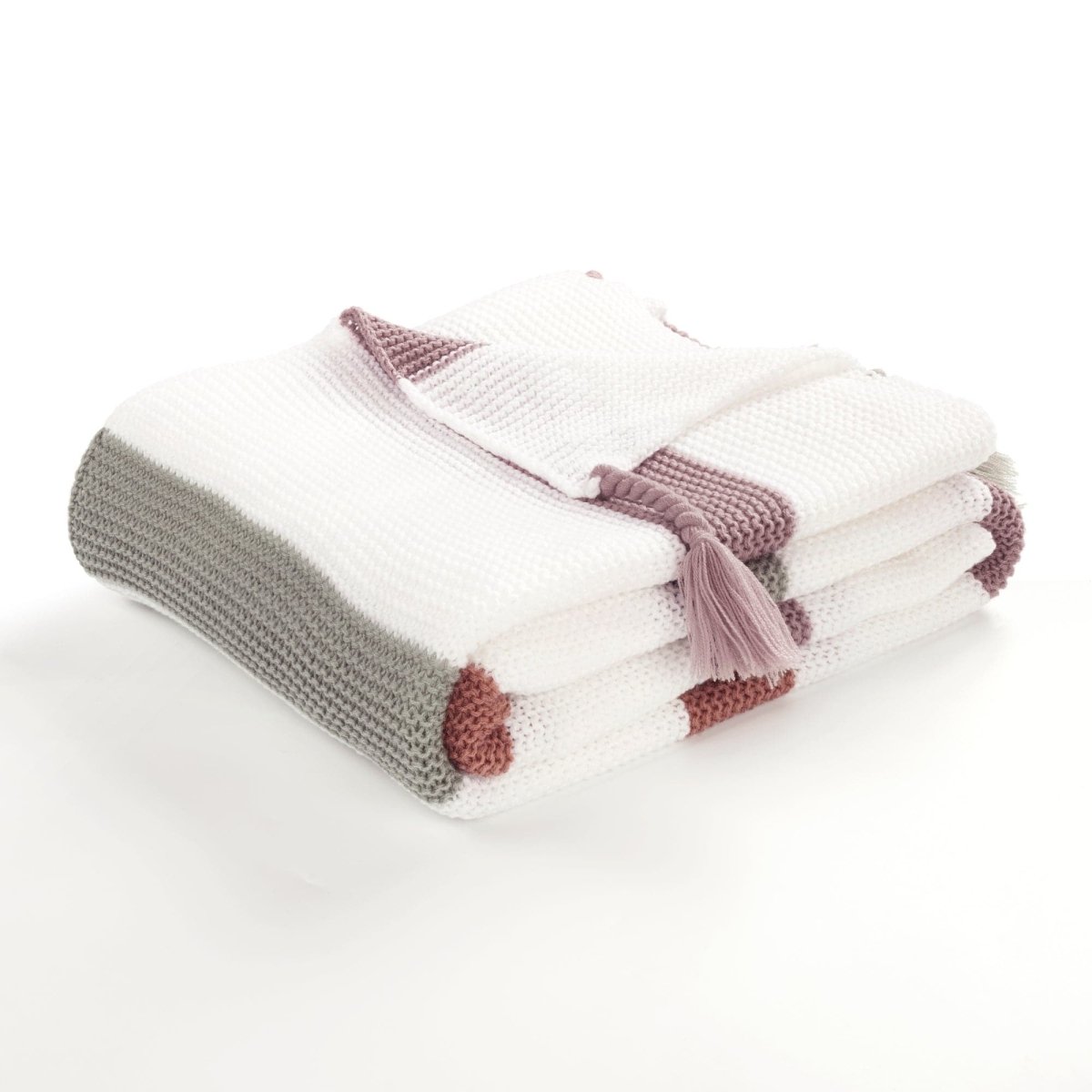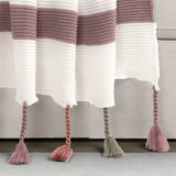 Cozy and lightweight for all season comfort, this relaxed throw blanket is the perfect accessory for your bohemian home. The block stripes create a dynamic look and the tassels add in fun dimension. Trendy and soft, this Boho Knitted Braided Tassel Throw will be your new go-to throw!