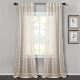 Our Farmhouse Textured Sheer Back Tab Rod Pocket Window Curtain Panel Set is available in multiple neutral color options to easily match your space. Each panel is 38 inches wide and 84 inches long. This curtain style is sold by the pair, so you will receive two panels per order. More color and size options are available in the grommet style.