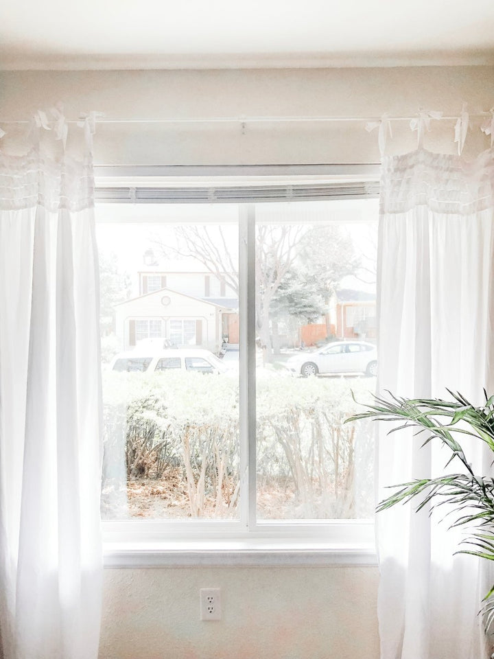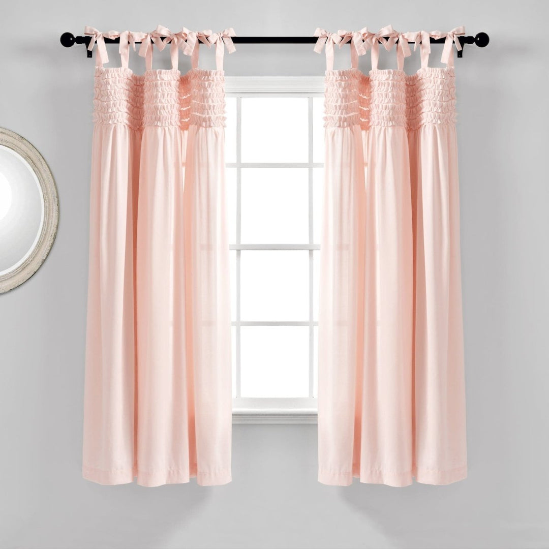 Das Lydia Ruffle Window Curtain Panel Set wird paarweise verkauft und jedes einzelne Panel ist 40 Zoll breit. Diese Panels sind wahlweise in den Längen 63 Zoll, 84 Zoll oder 95 Zoll erhältlich (einige Farben sind möglicherweise nicht in allen Größen erhältlich). Dieses Set ist derzeit erhältlich in vier Farboptionen: Rosarot, Weiß, Grau oder Elfenbein.