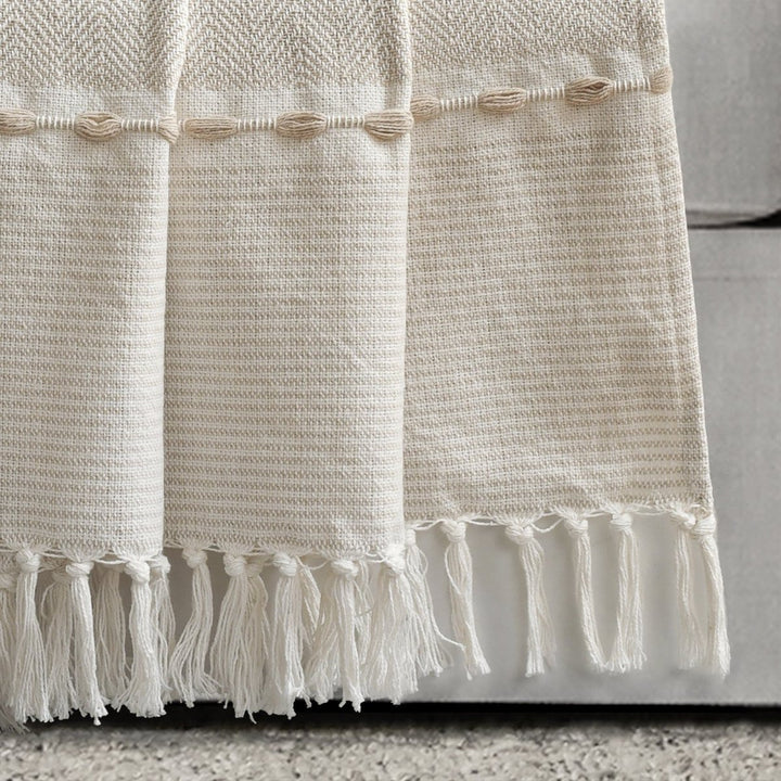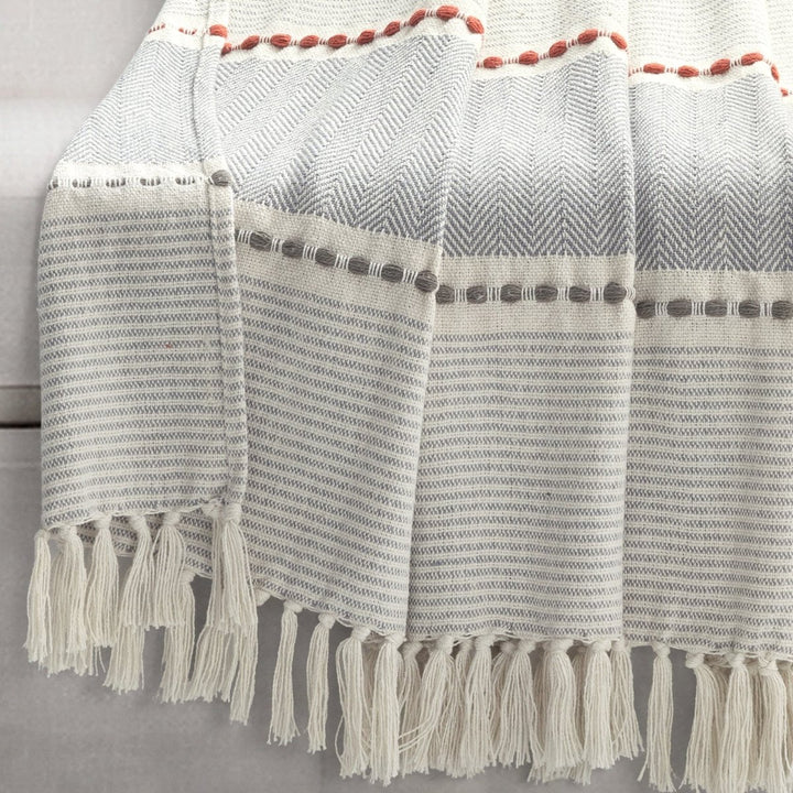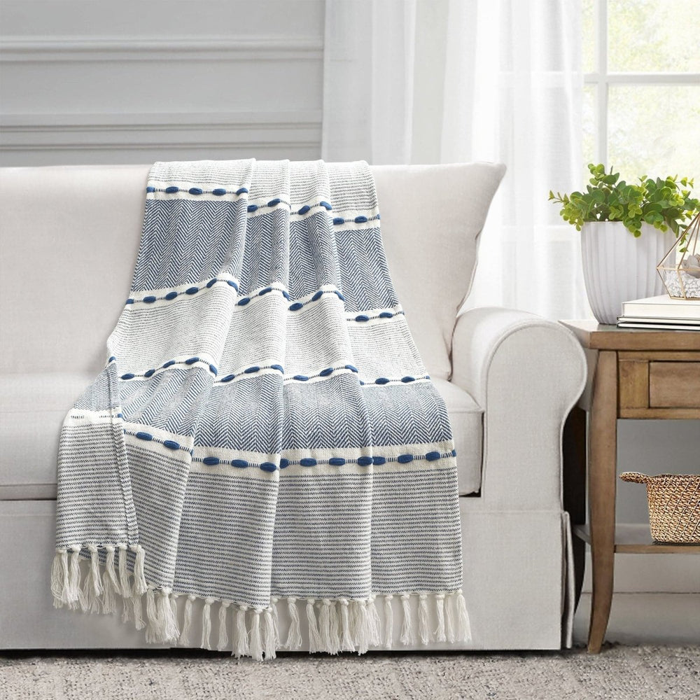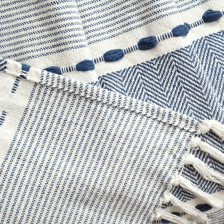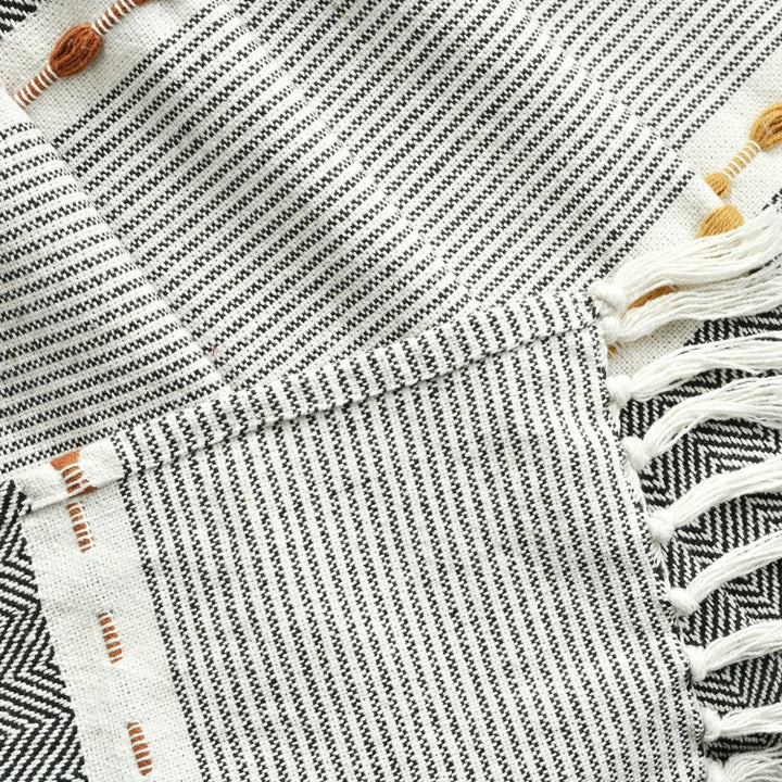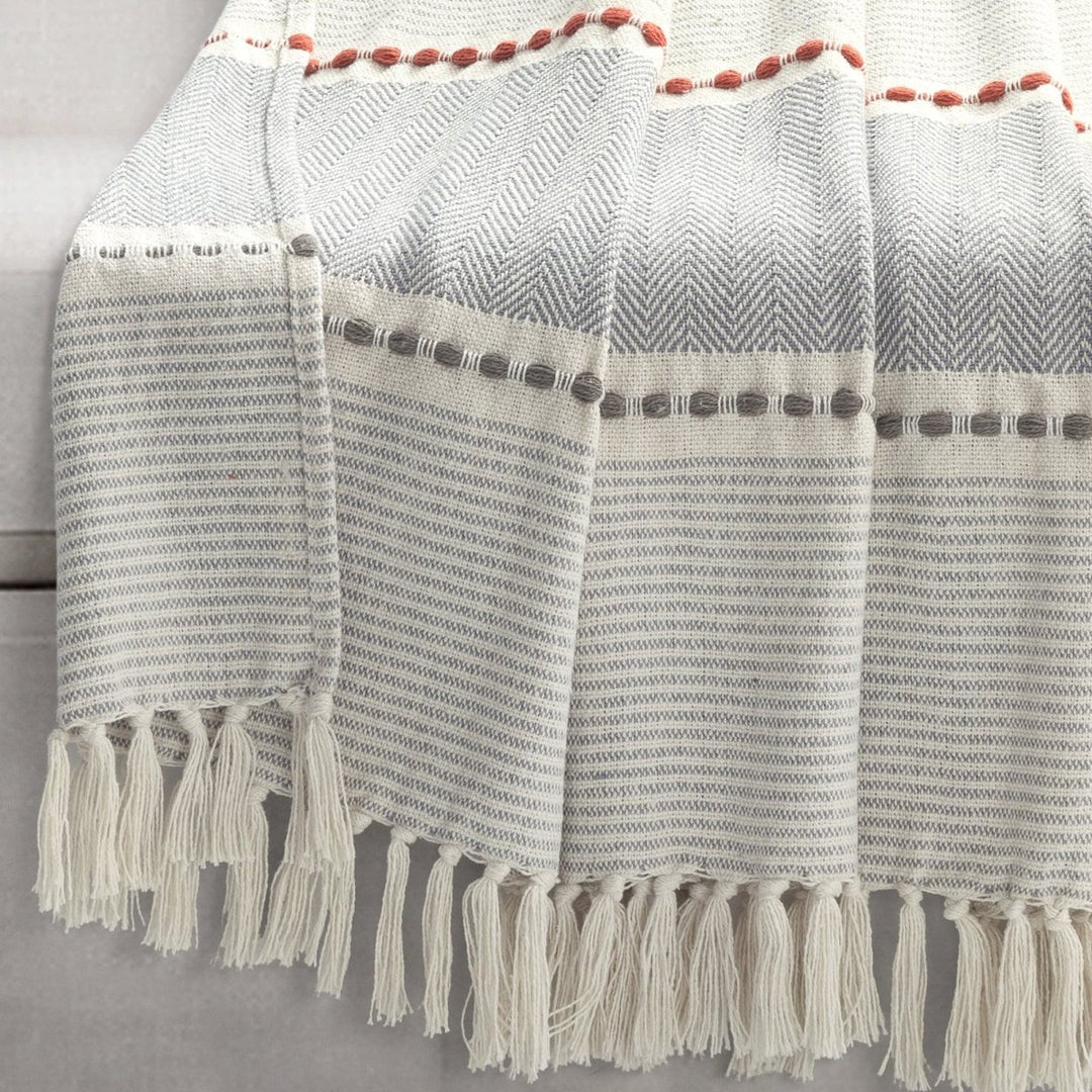 Verleihen Sie Ihrem Zuhause einen schlichten Stil mit diesem gemütlichen Überwurf mit Quasten aus garngefärbter Baumwolle mit Fischgrätenmuster und Streifenmuster. Das Streifendesign passt zu vielen verschiedenen Einrichtungsstilen wie Boho und Hygge. Dieser Überwurf ist für Ihren Komfort aus garngefärbter Baumwolle gefertigt. Das Fransendetail mit Quaste verleiht dieser Decke einen Hauch von zusätzlichem Stil.