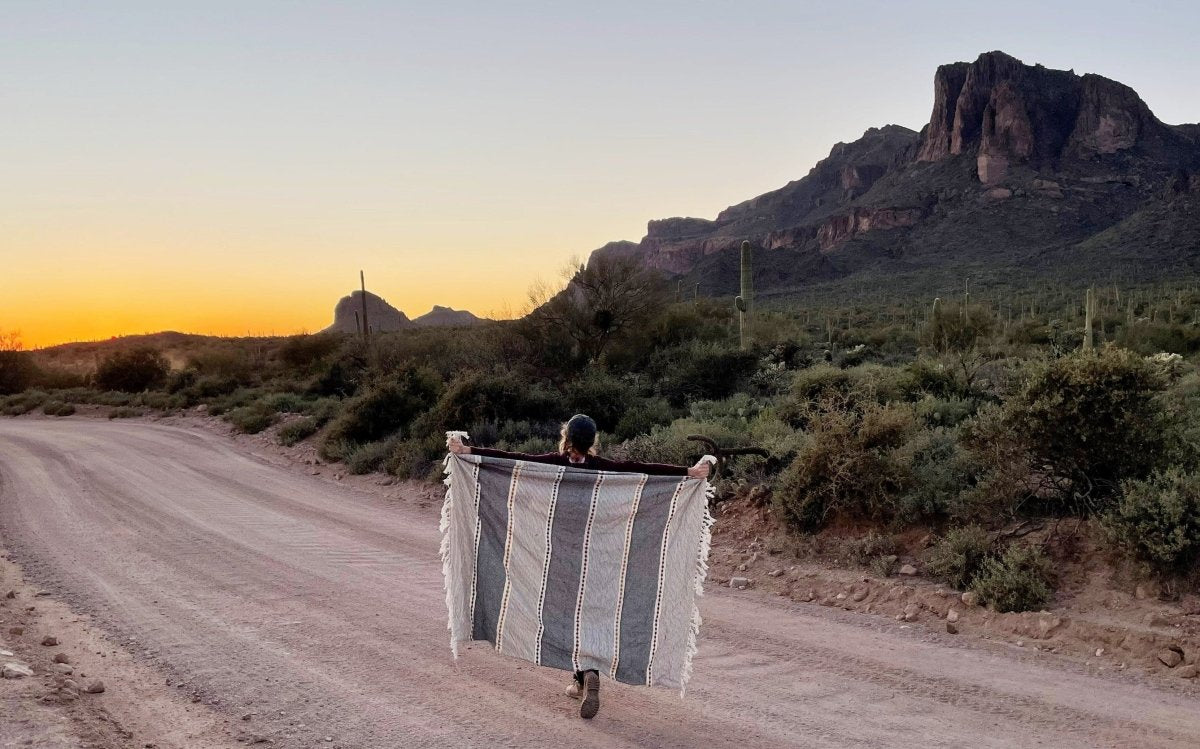 Obwohl unser Überwurf aus garngefärbter Baumwolle mit Fischgrätenstreifen und Quasten nicht für den Gebrauch im Freien geeignet ist (bringen Sie ihn also bitte immer wieder ins Haus), eignet er sich hervorragend für Lagerfeuer im Freien, Ausflüge an den Strand und andere schöne Exkursionen.