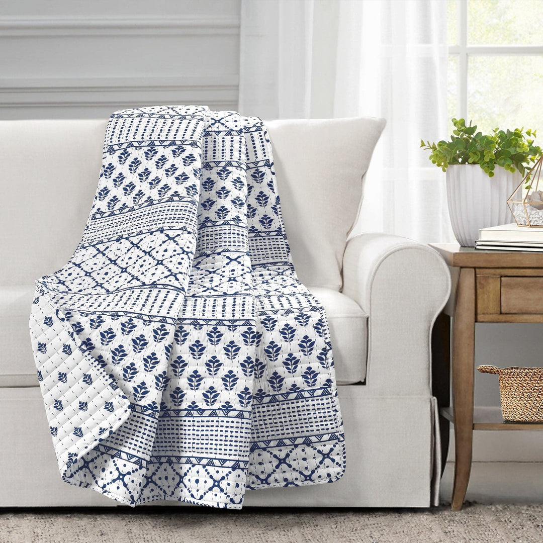 Sofia Flower Block Bouquet Reversible Cotton Throw Blanket