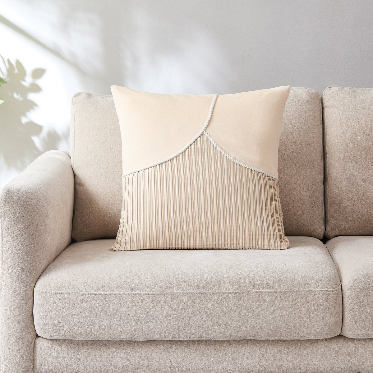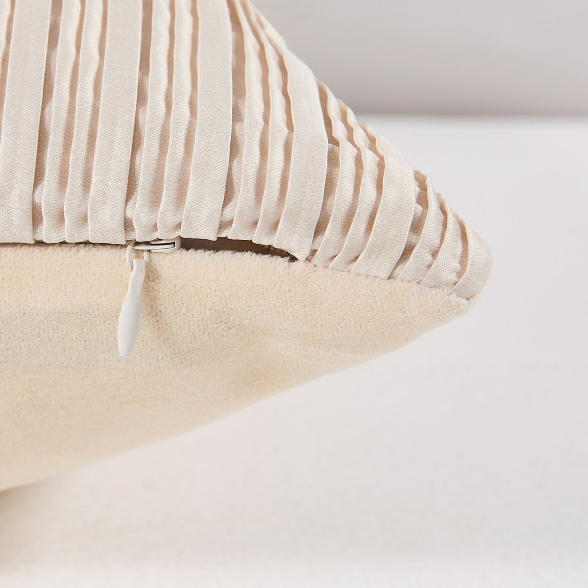 Velvet pillow cover with pleated base and scalloped rope-trim detail. Bold, textural design for sofa, bed, or chair. Insert not included.