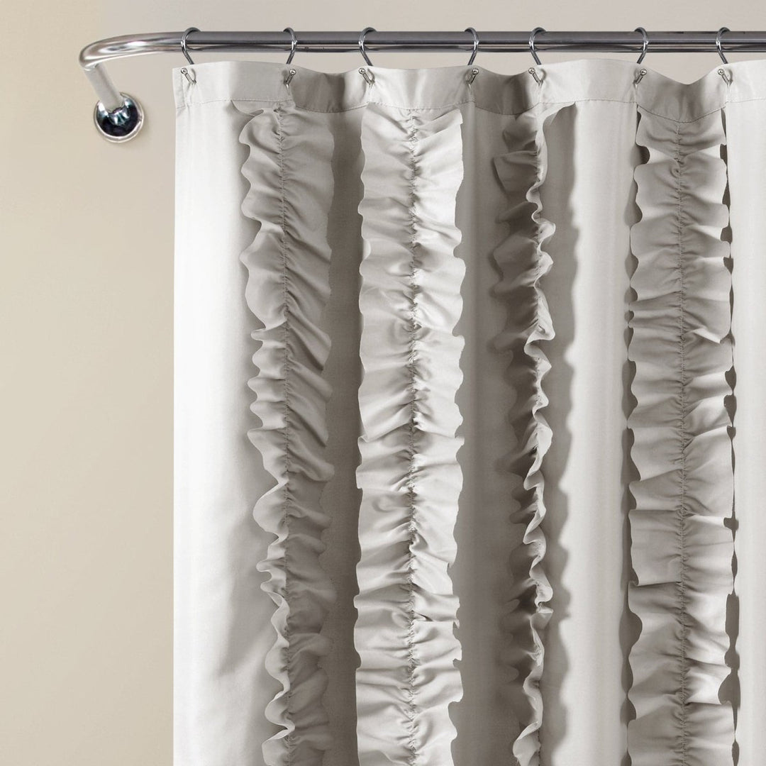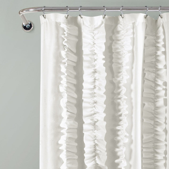 Update your bathroom decor with this beautiful shabby chic ruffled Belle Shower Curtain. The vertical ruffled stripes give this shower curtain a unique, fashionable look that will enhance your master, guest or child’s bathroom without taking over the design.