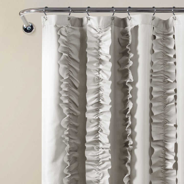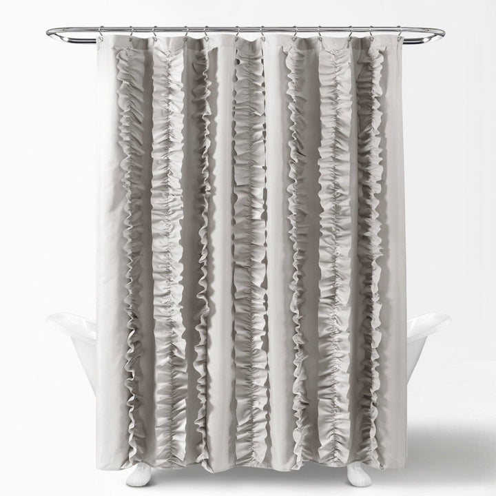 Vertical striped ruffles flow from the top to the bottom of the soft brushed poly fabric, lending charm and luxury to the ambience of your bathroom. Our Belle Shower Curtain will make a statement without overwhelming the room.