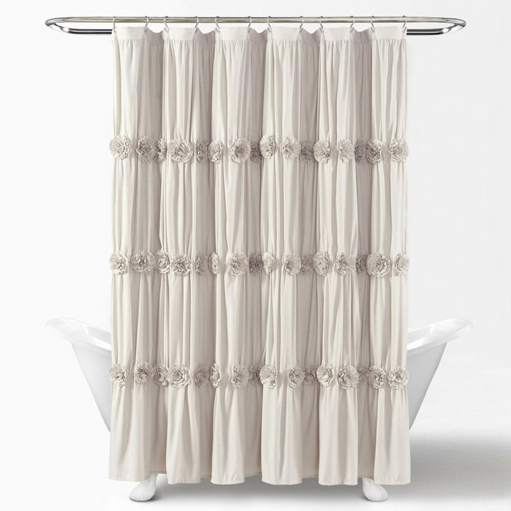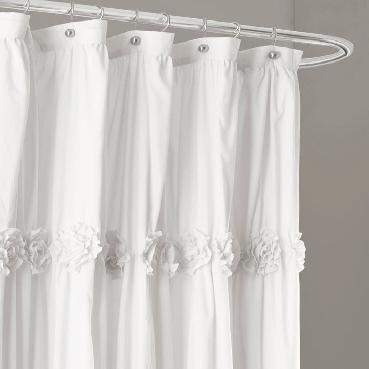 With details such as ruching and hand-crafted flowers, the Darla Shower Curtain can change the whole look of your bathroom without overwhelming it. The solid color design makes it easy to match the rest of your bathroom decor.