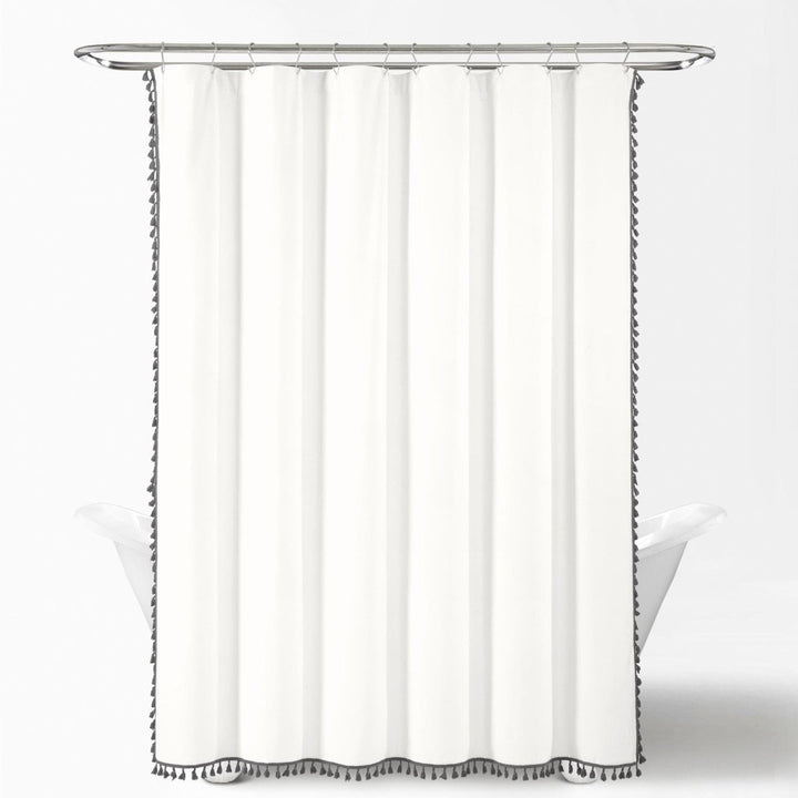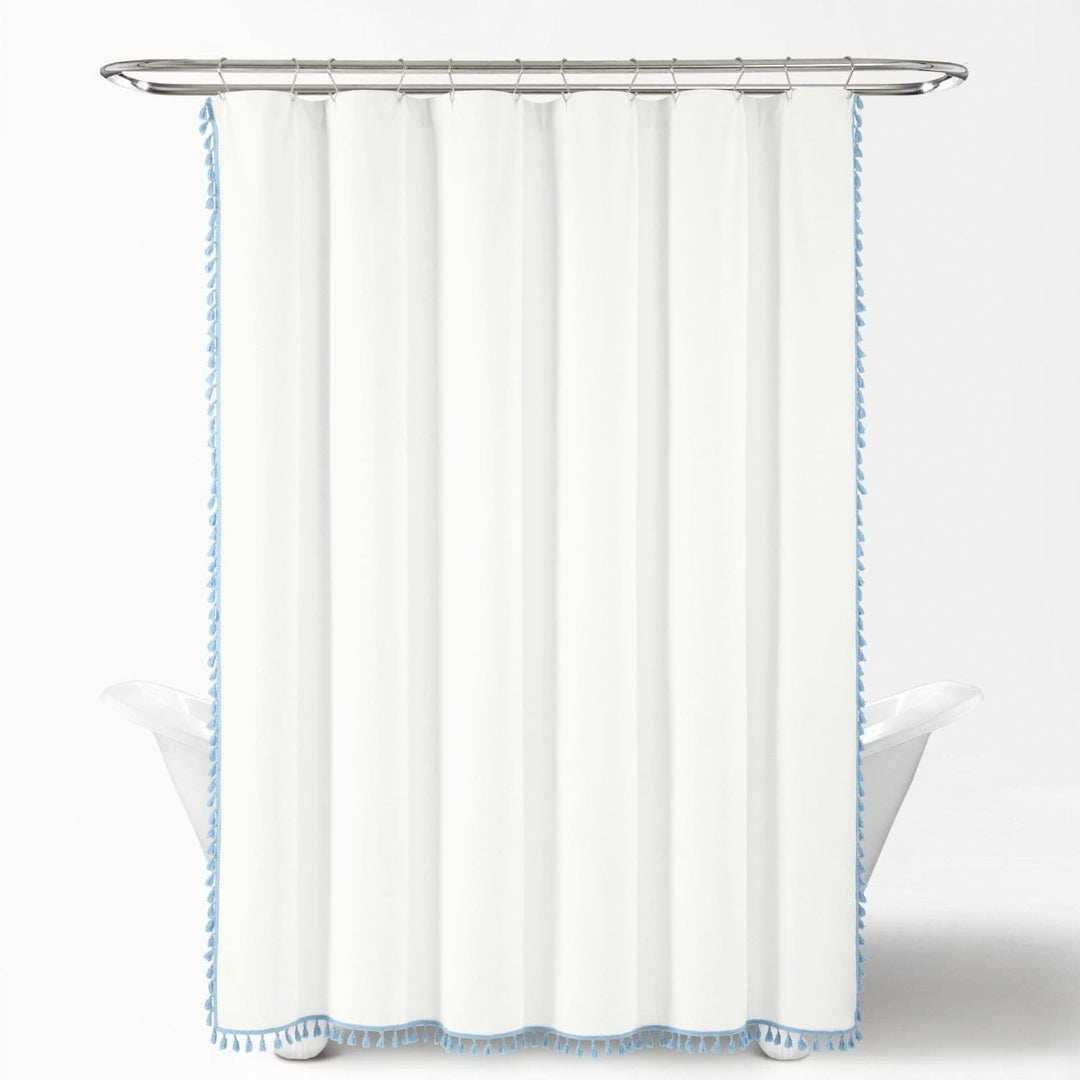 Combine simplicity with your favorite boho accent and you get this stylish Boho Melora Tassel Yarn Dyed Recycled Cotton Blend Shower Curtain. This solid white curtain is anything but boring, featuring a tassel trim on 3 sides, adding the right pop of color to your primary or guest bathroom. This product contains 100% GRS certified recycled material.