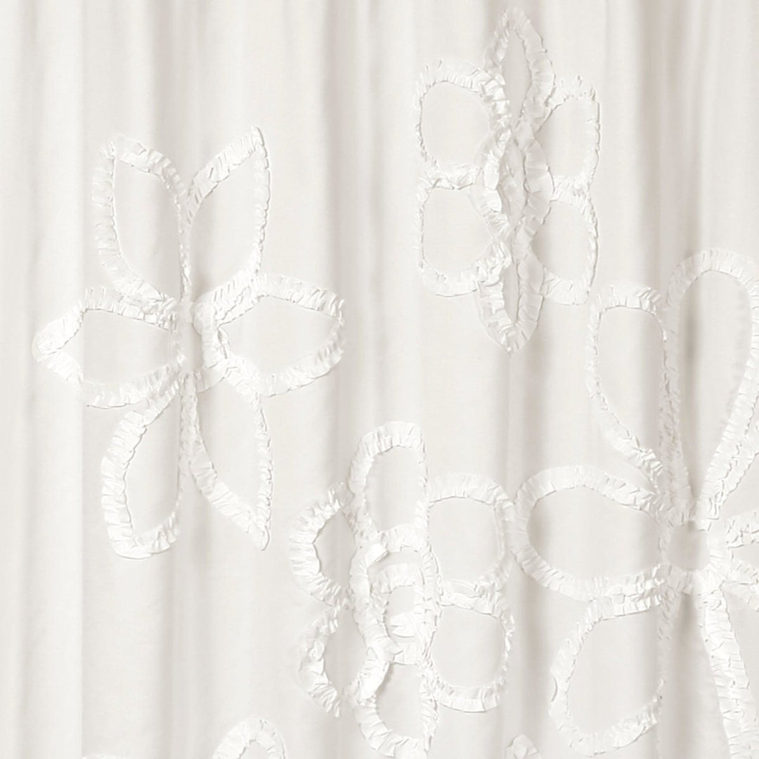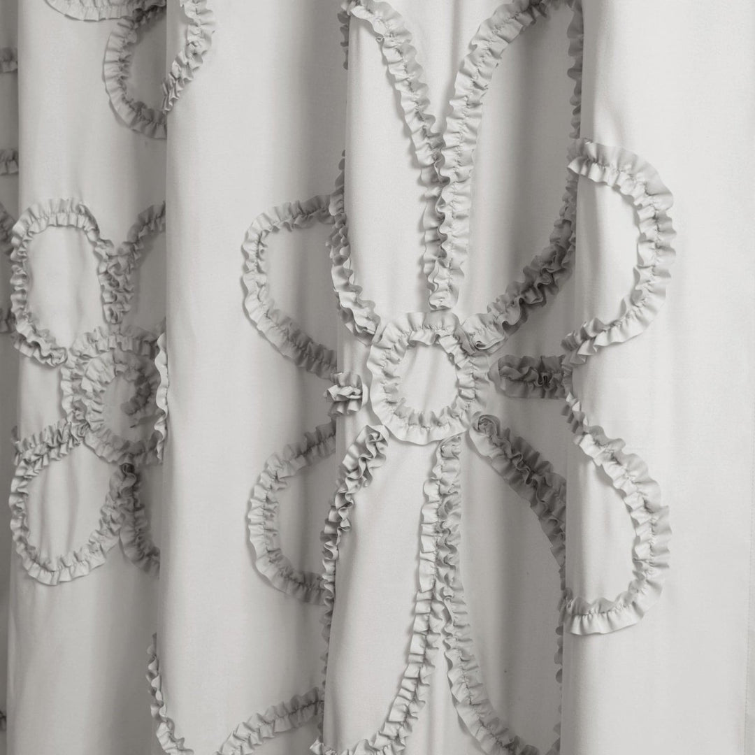 Big beautiful floral embellishments make this Ruffle Flower Shower Curtain elegant and fun. It's perfect for any age and will brighten any bathroom in your home. This shower curtain adds texture to your space and is perfect for minimalist or traditional designs.
