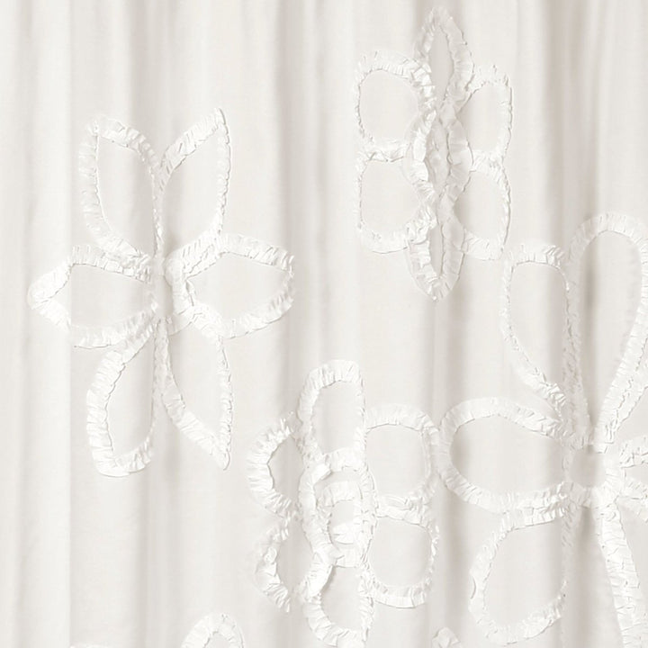 Fancy, frilly and unique are all words that describe this shower curtain. Soft brushed poly creates a perfect backdrop for the flower details, giving this shower curtain the perfect look. The Ruffle Flower Shower Curtain can change the whole look of your bathroom without overwhelming it.