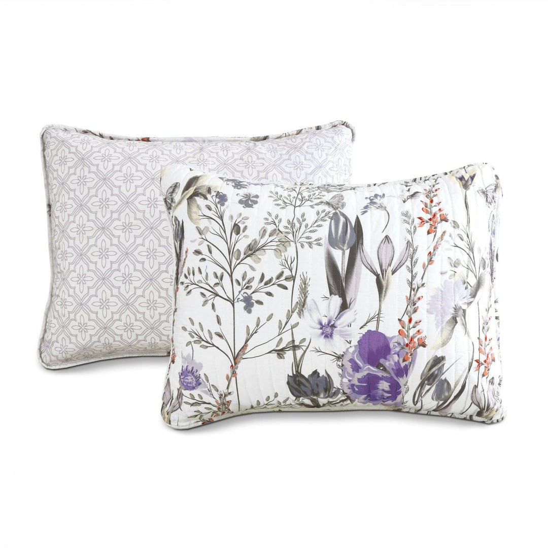 This Adalia 3 Piece Quilt Set comes complete with a cotton reversible quilt and two pillow shams. The print gives the look of a beautiful flowery meadow that brightens any bedroom. The picturesque flowers and butterflies pop off the white background. This set is available in your choice of full/queen and king sizes in purple or yellow.