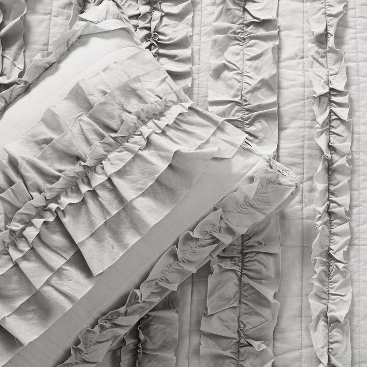 Our Belle Quilt 3 Piece Set is the essence of frilly and pretty. The layered ruffles create luxurious dimension as they cascade over the bed. The quilt itself is so soft to the hand you'll just want to surround yourself with it and never get out of bed.
