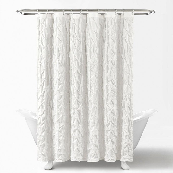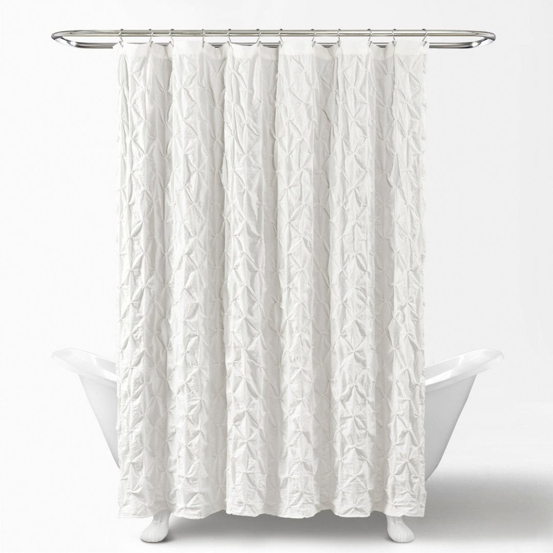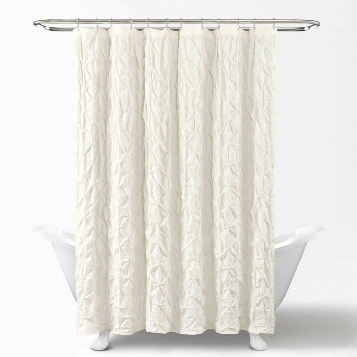 Add this Ravello Pintuck Shower Curtain to your bathroom to create a styled look in any or all of your bathrooms. This style is currently offered in two color options, including ivory and white.