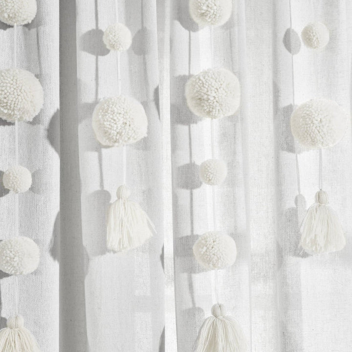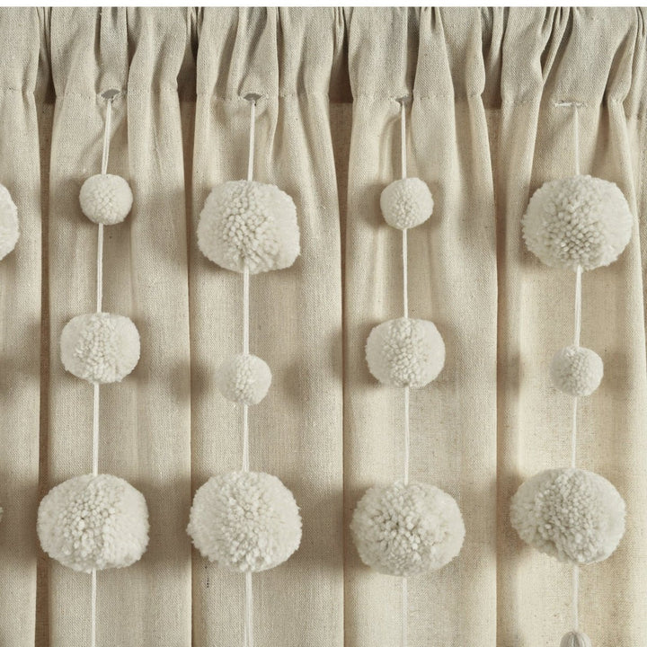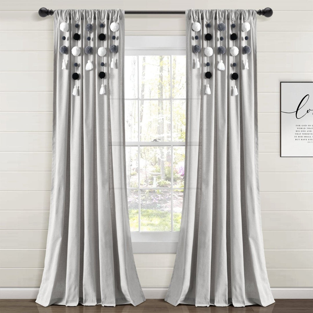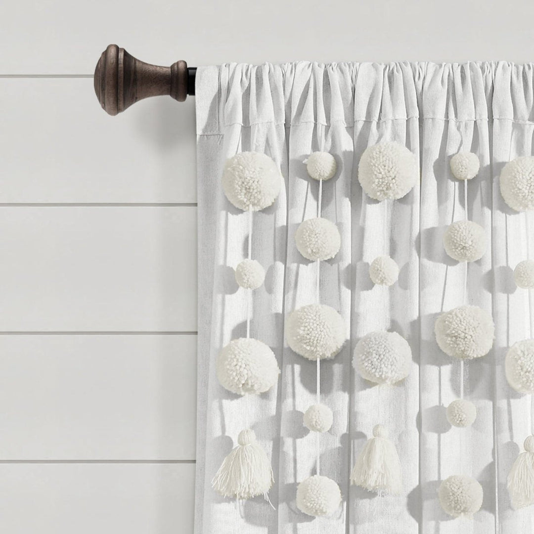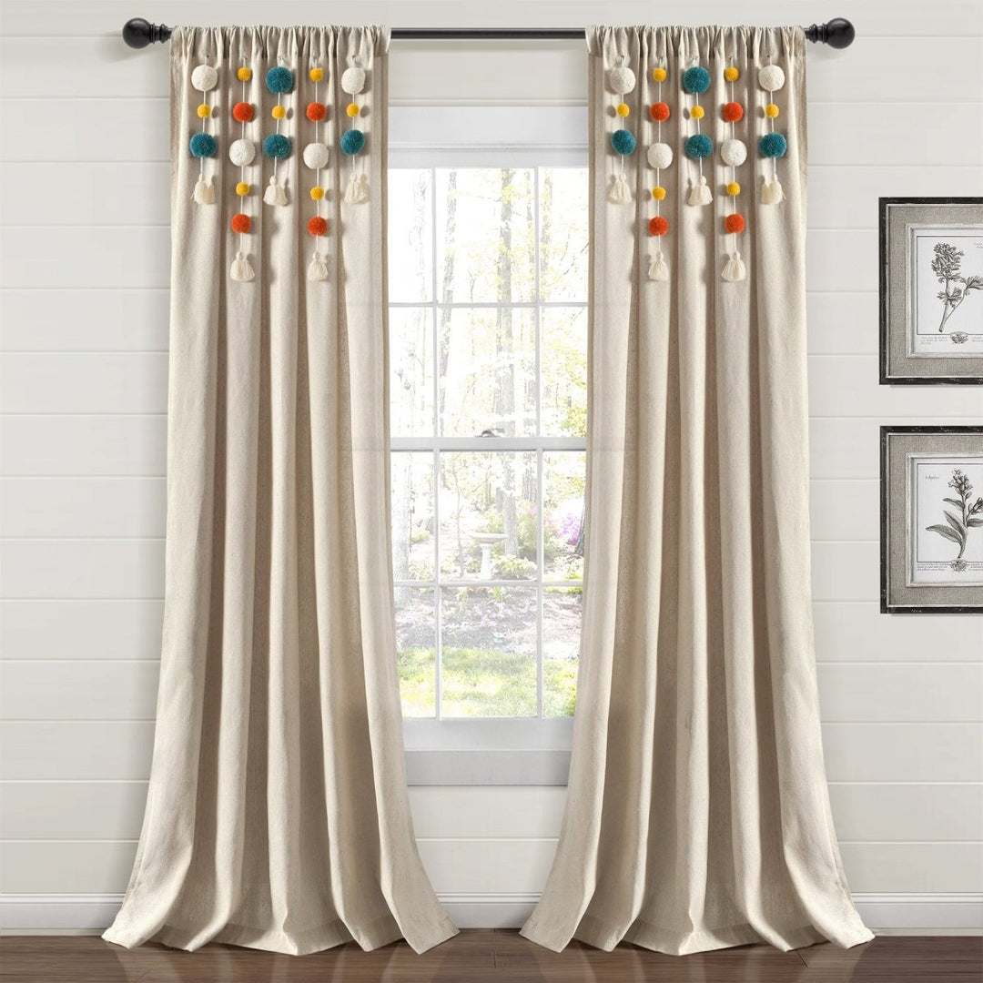 Boho Pom Pom Tassel Faux Linen Window Curtain Panel