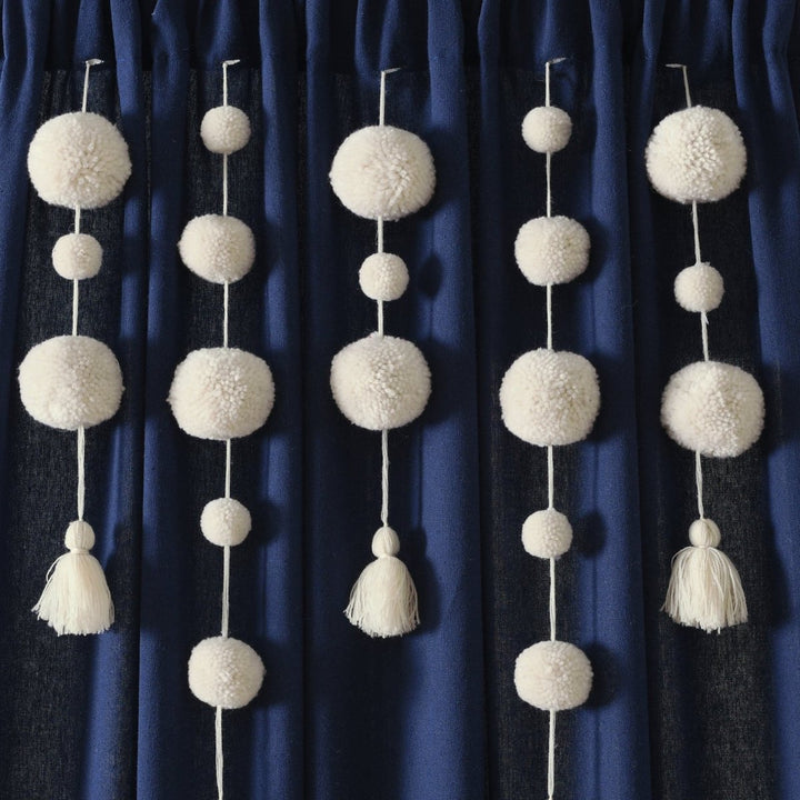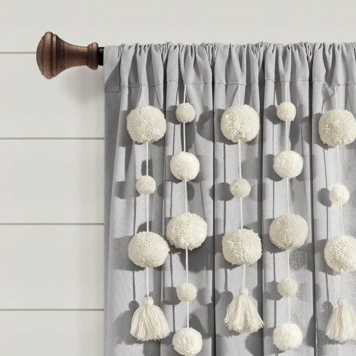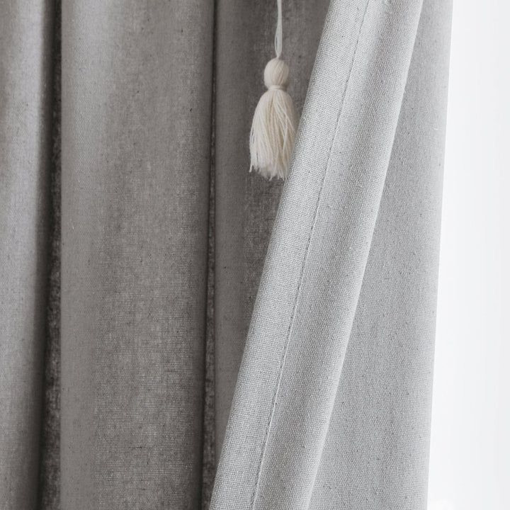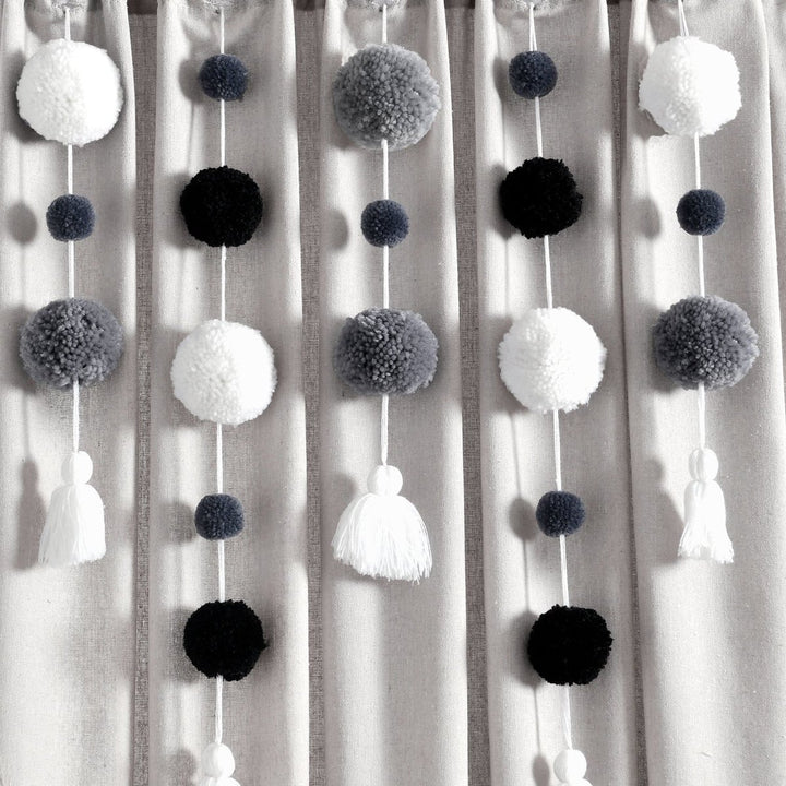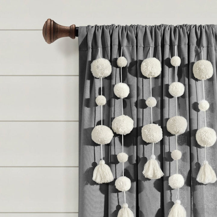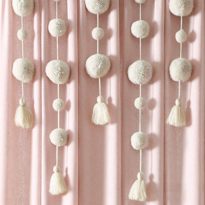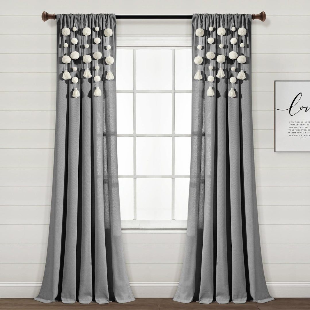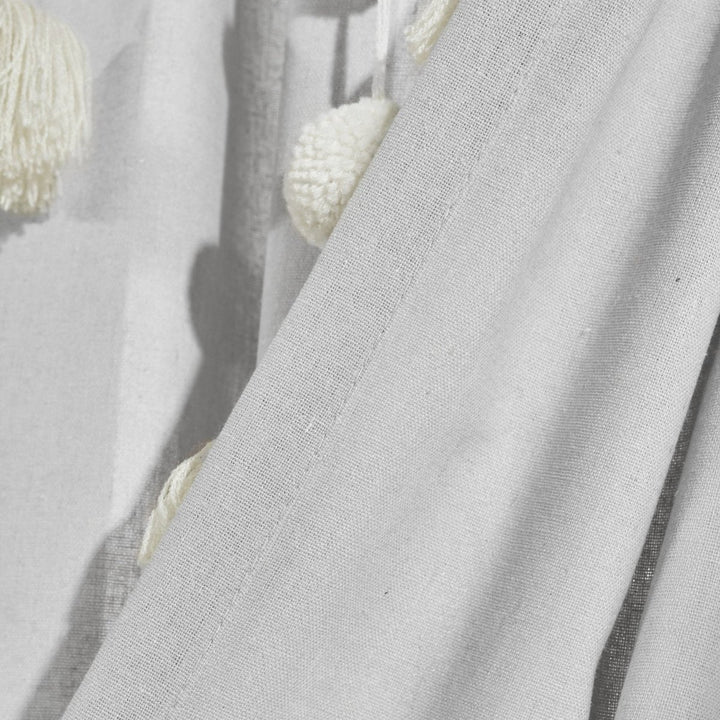 Boho Pom Pom Tassel Faux Linen Window Curtain Panel
