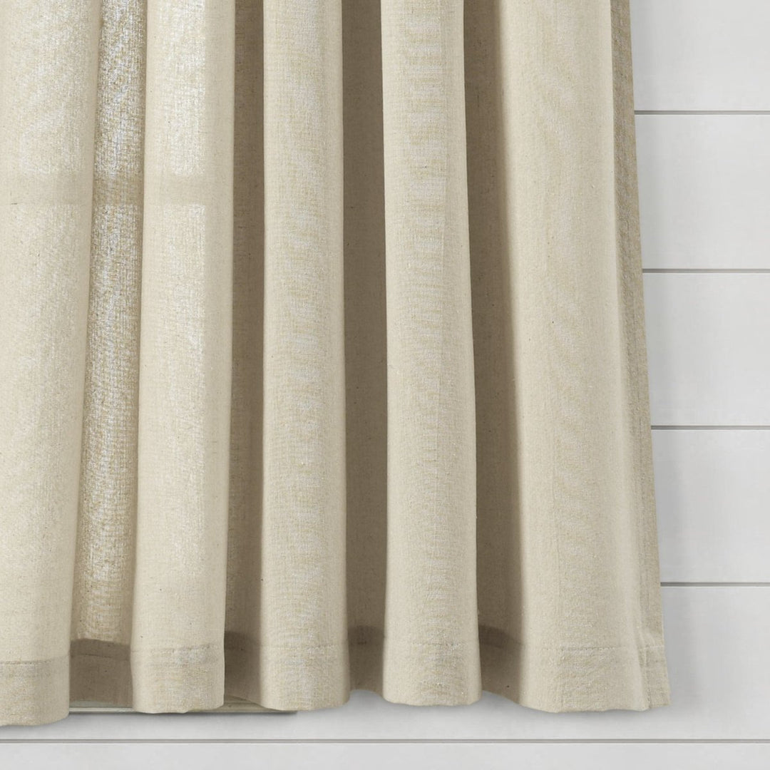 This curtain will offer ample privacy from outsiders while letting in plenty of natural light. This Boho Pom Pom Tassel Faux Linen Window Curtain Panel is sold by the single panel, so you will need to purchase two to get the look in the photo. Each panel measures 52 inches wide and comes with 5 detachable strings adorned with varying size pom poms and tassel. This panel is available in your choice of lengths: 63 inches long, 84 inches long, or 95 inches long. Some colors may not be offered in all sizes.