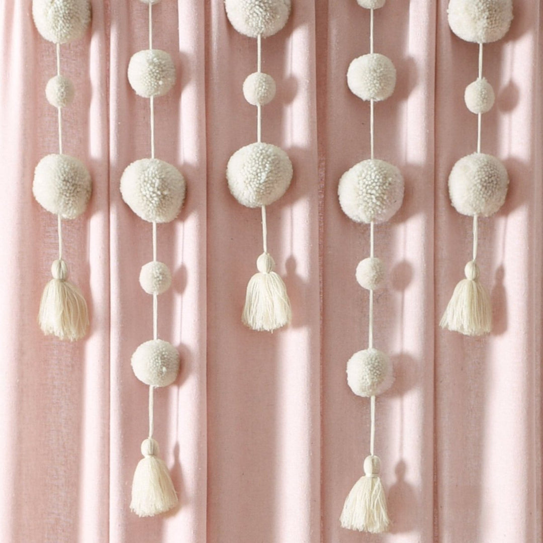 This whimsical Boho Pom Pom Tassel Faux Linen Window Curtain Panel can work in so many design themes, from boho, to Hollywood glitz and glam, and so much more. Use these panels in a bedroom, living room, nursery or home office. This style is currently available in ten color options to easily match your existing decor.
