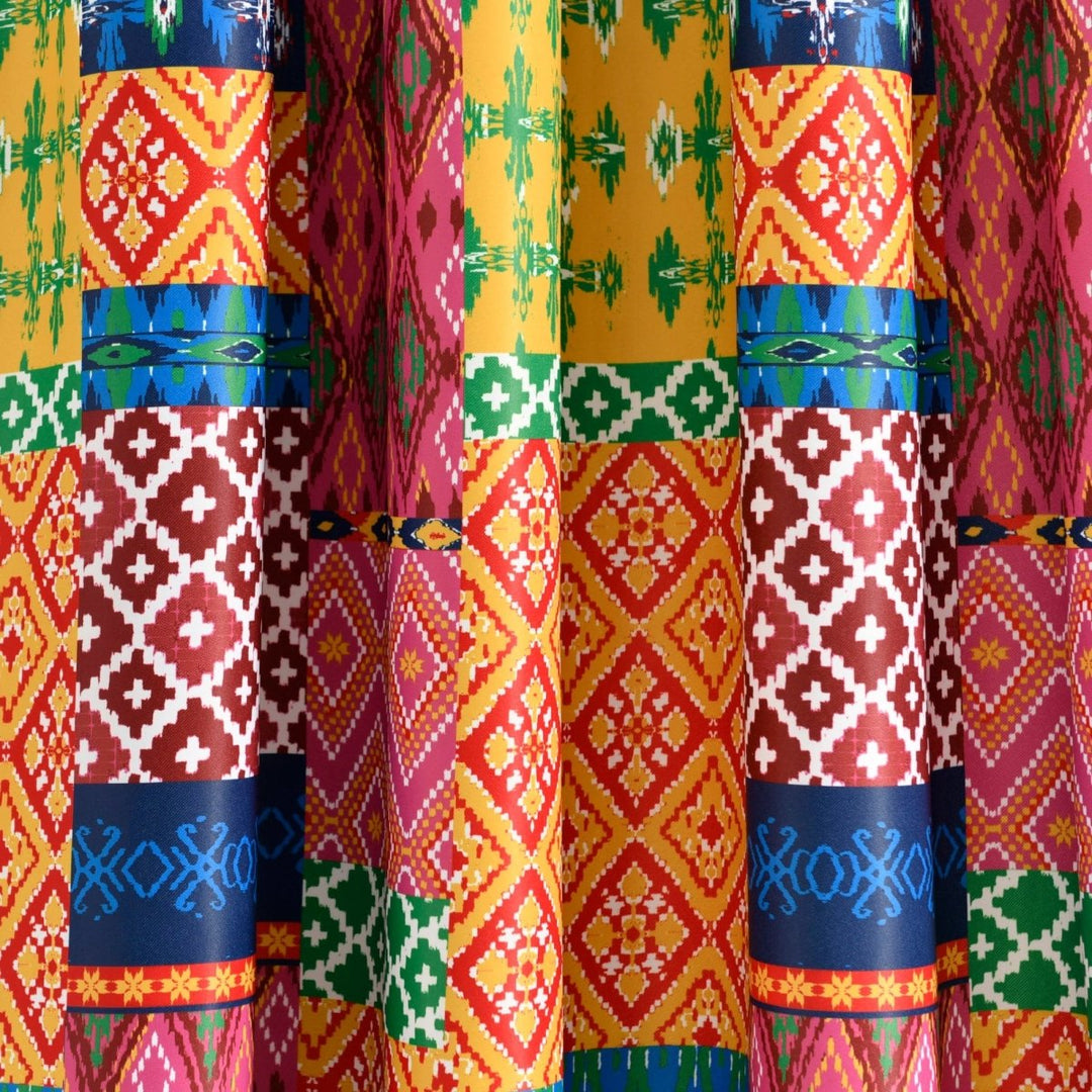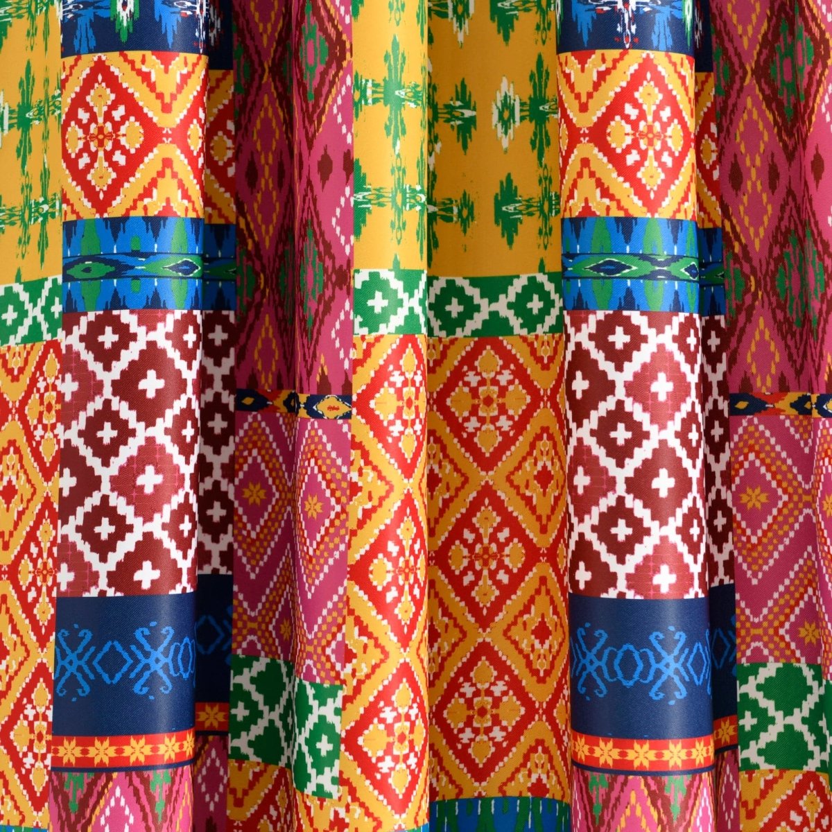 The Misha Light Filtering Window Curtain Set takes patchwork style to a whole new level. Bright and bold colors make these curtains a statement piece in any room. Each section of the patchwork includes a geometric pattern.