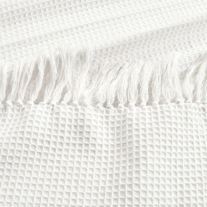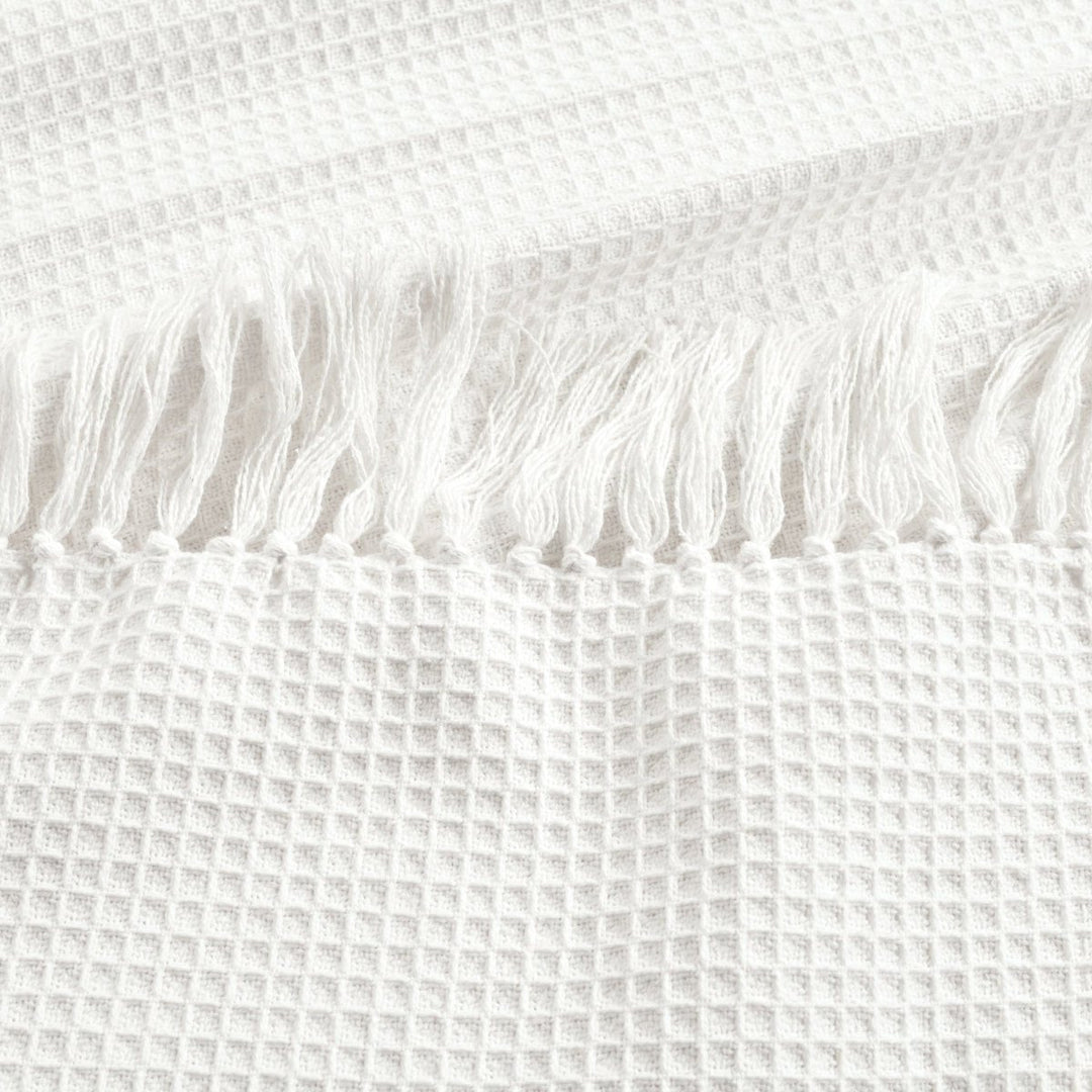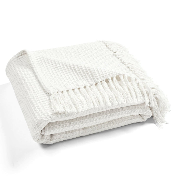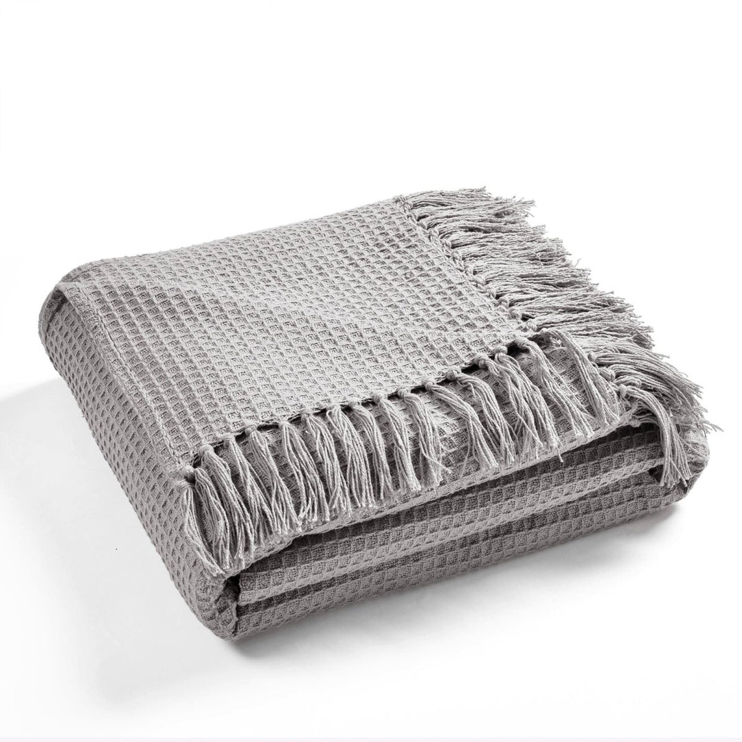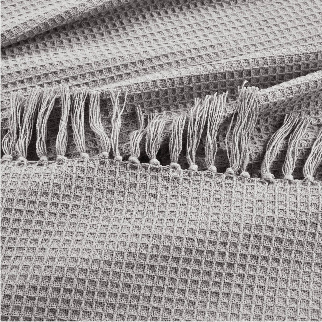 Questa esclusiva coperta/copriletto con frange a nido d'ape in cotone lavorato a maglia è un grazioso capo da indossare a strati con la sua texture a nido d'ape su colori neutri solidi. Questa coperta in maglia di cotone al 100% è incredibilmente morbida e ha un peso perfetto per essere utilizzata tutto l'anno.