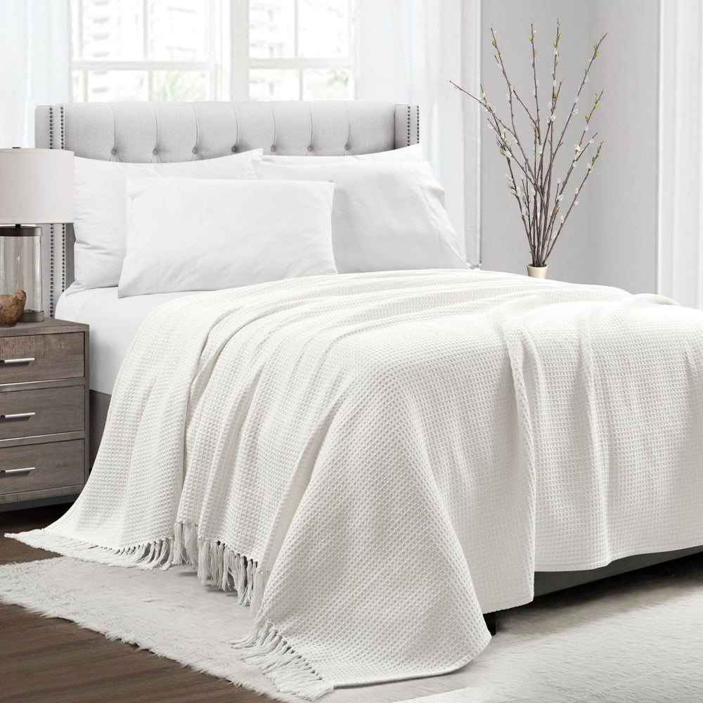Aggiungi stile e comfort alla tua camera da letto con questa morbida coperta/copriletto in maglia di cotone. La coperta in tinta unita presenta un bordo con frange di nappe su due lati. Con un design così versatile, puoi facilmente adattare questo articolo a molti temi di arredamento. La coperta/copriletto con frange di nappe in maglia di cotone Waffle si adatta perfettamente a un tema di design boho, hygge, minimalista, shabby and chic, fattoria o tradizionale.