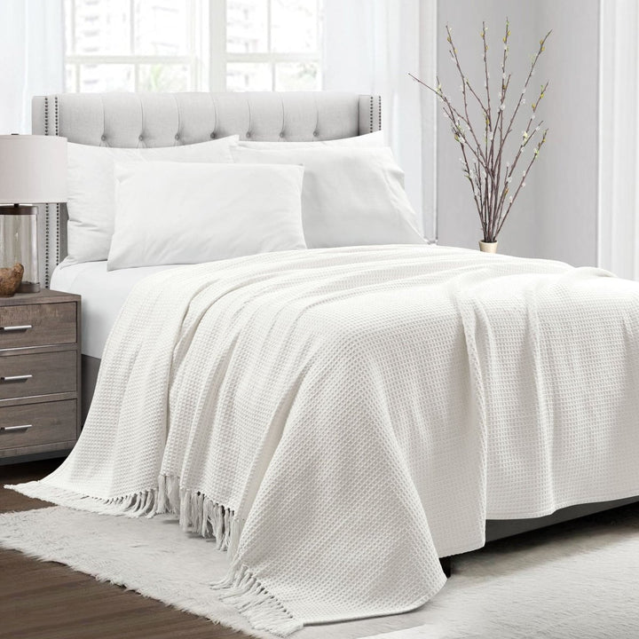 La coperta/copriletto Waffle Cotton Knit Tassel Fringe è disponibile nella misura matrimoniale/queen o king size a tua scelta. Le federe non sono incluse. Dovresti riuscire a coordinare una federa in tinta unita da abbinare a questa coperta.