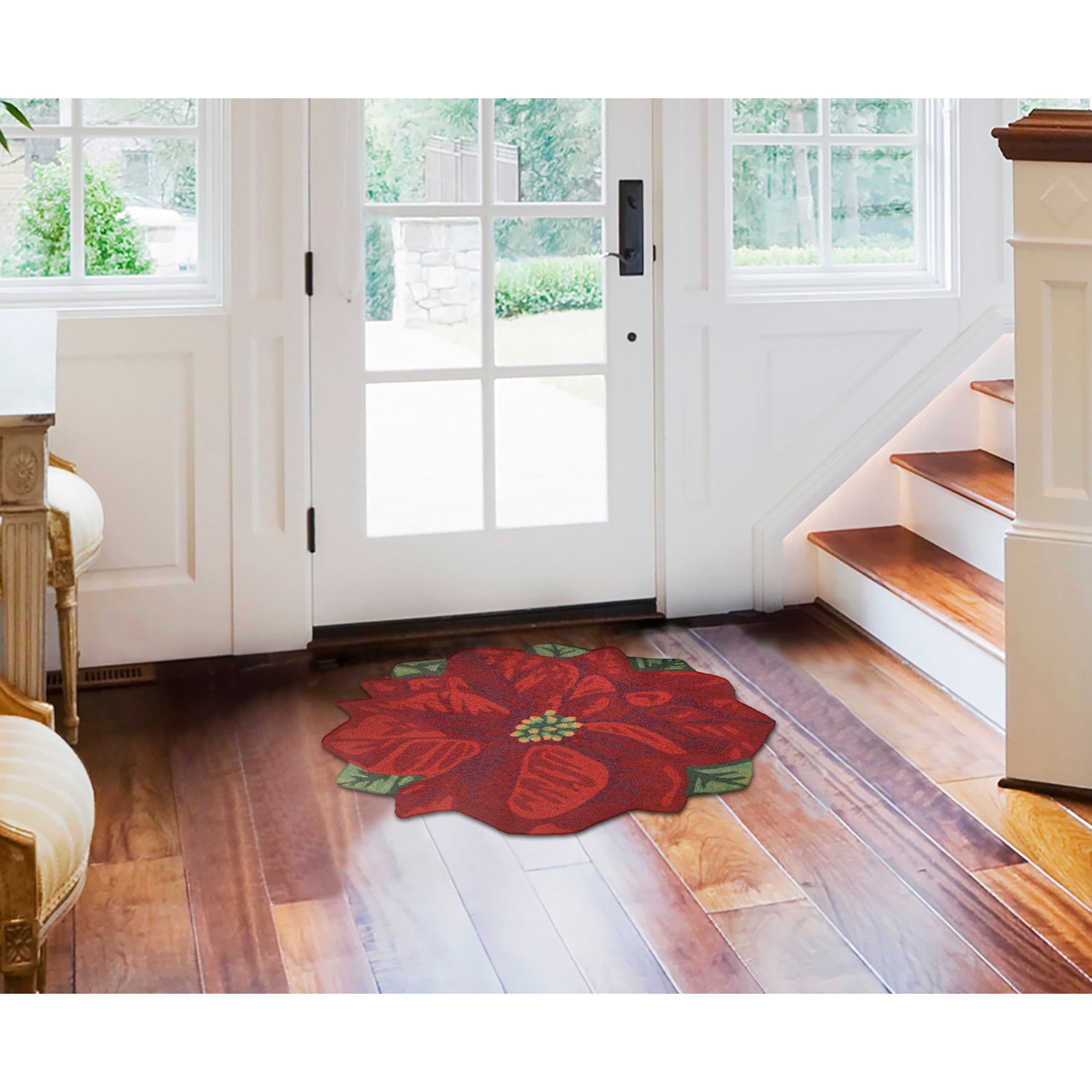 The Poinsettia holiday mat features a shaped cut out of a poinsettia flower. The deep red poinsettia is accented with winter greenery adding the holiday spirit to your home. This happy scene makes this mat the perfect accent to welcome guests at your door, at your kitchen sink, or in any space inside or outside your home.