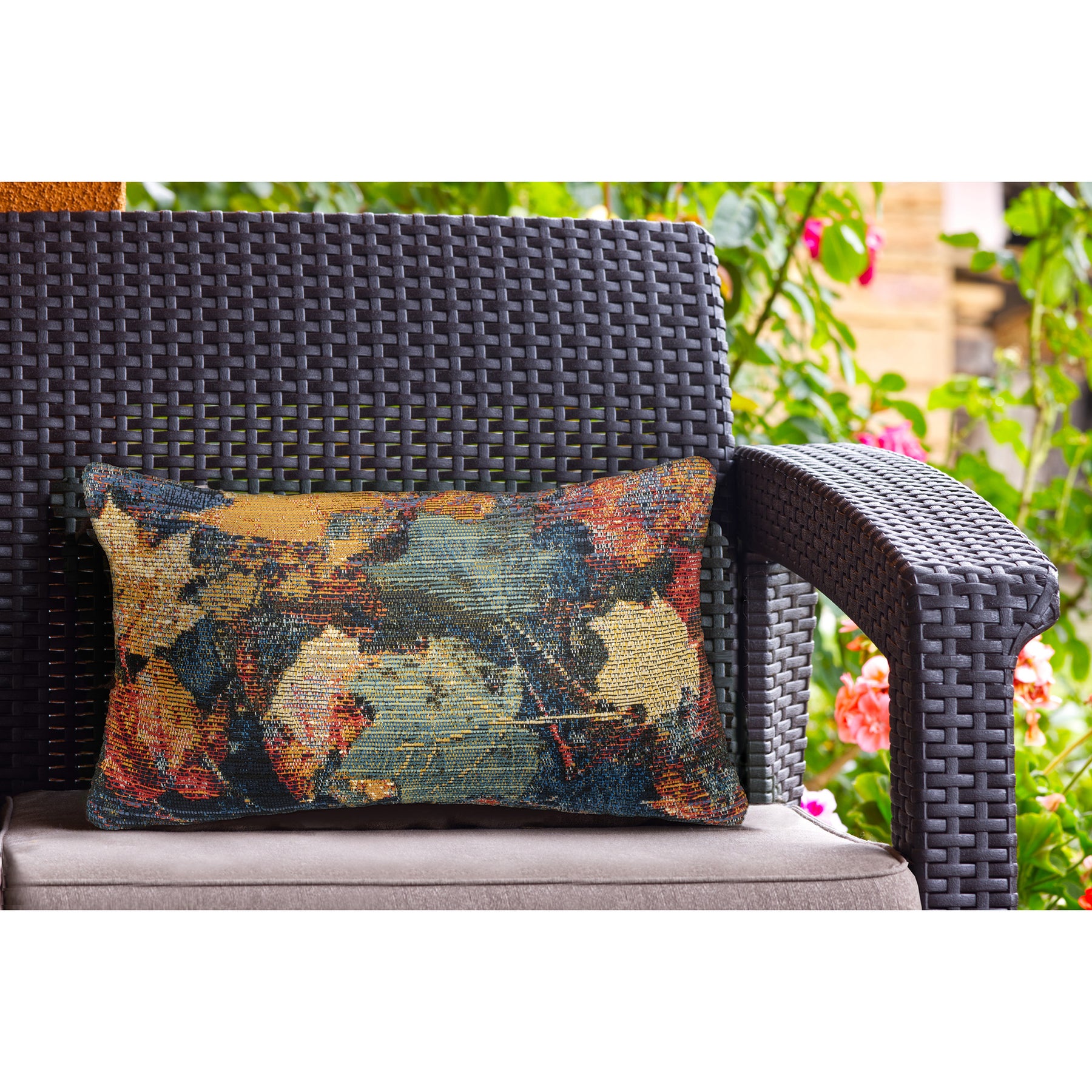 The Fall in Love transitional abstract garden pillow features deep, vivid colors, adding the romance and nostalgic appeal of nature to your indoor or outdoor space.