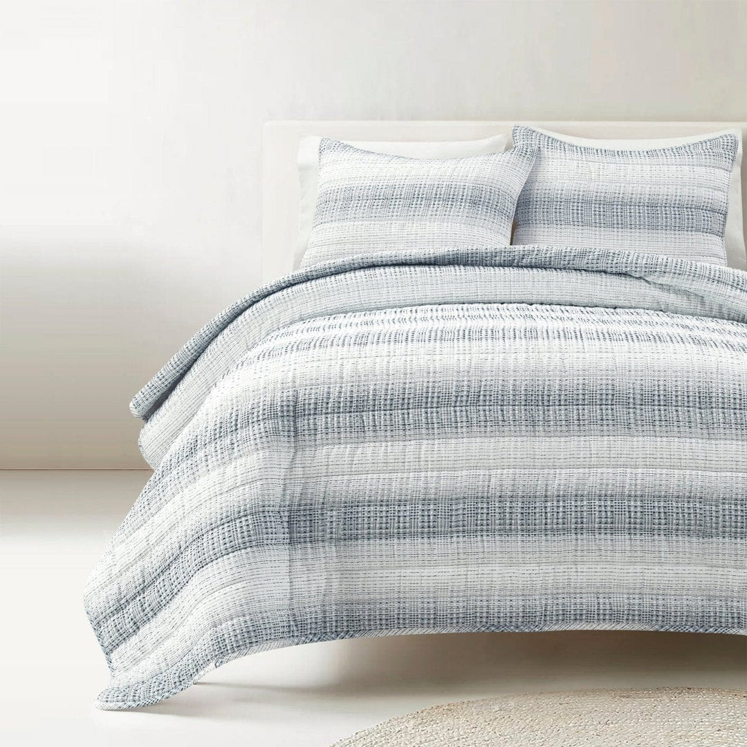 Questo set di 3 pezzi di trapunta oversize Yarn Dyed Textured Stripe Waffle è morbido e leggero, ed è un'ottima aggiunta alla camera da letto principale o degli ospiti. Questa trapunta si fonde perfettamente con molti temi di arredamento per la casa, tra cui stili moderni, minimalisti e rustici.
