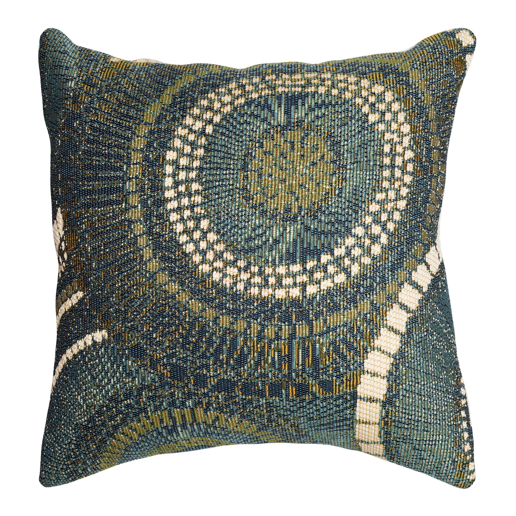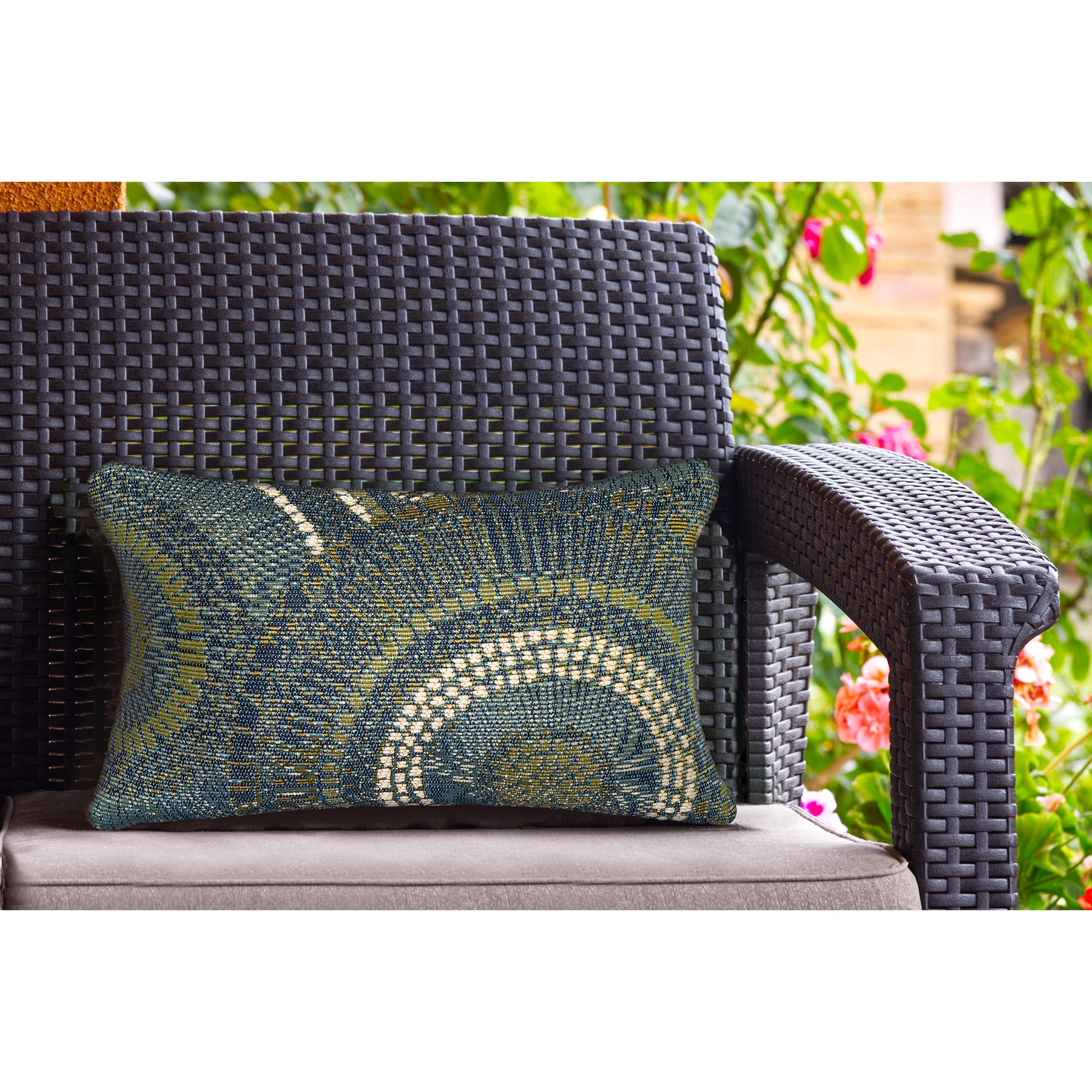 Remove pillow insert from cover and machine wash both cover and insert on the gentle cycle, using mild detergent. Lay cover flat to dry, insert may be tumbled dry on low heat. Do not use a hard bristle brush. Limiting exposure to rain, moisture, and direct sun will prolong pillow life.