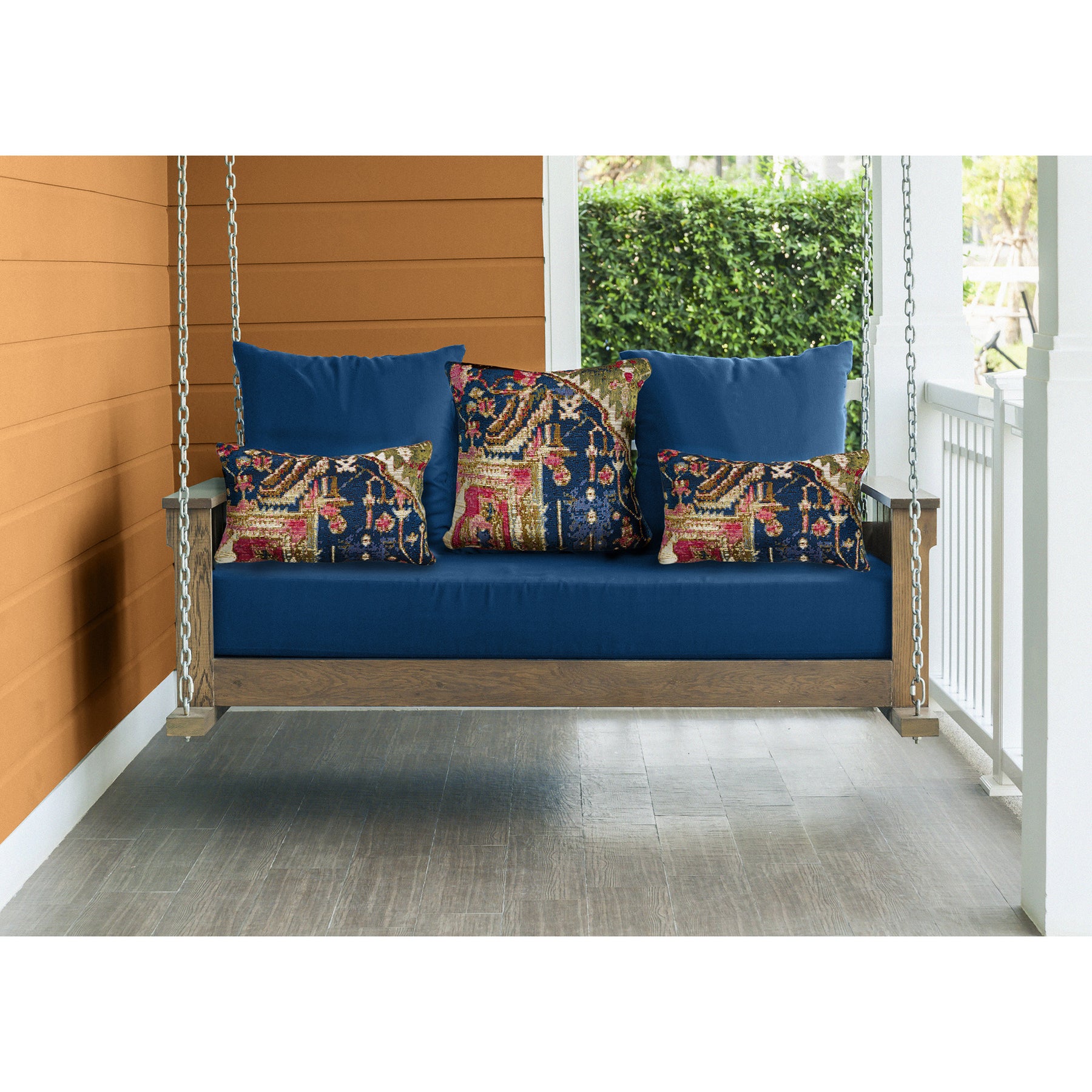 Remove pillow insert from cover and machine wash both cover and insert on the gentle cycle, using mild detergent. Lay cover flat to dry, insert may be tumbled dry on low heat. Do not use a hard bristle brush. Limiting exposure to rain, moisture, and direct sun will prolong pillow life.